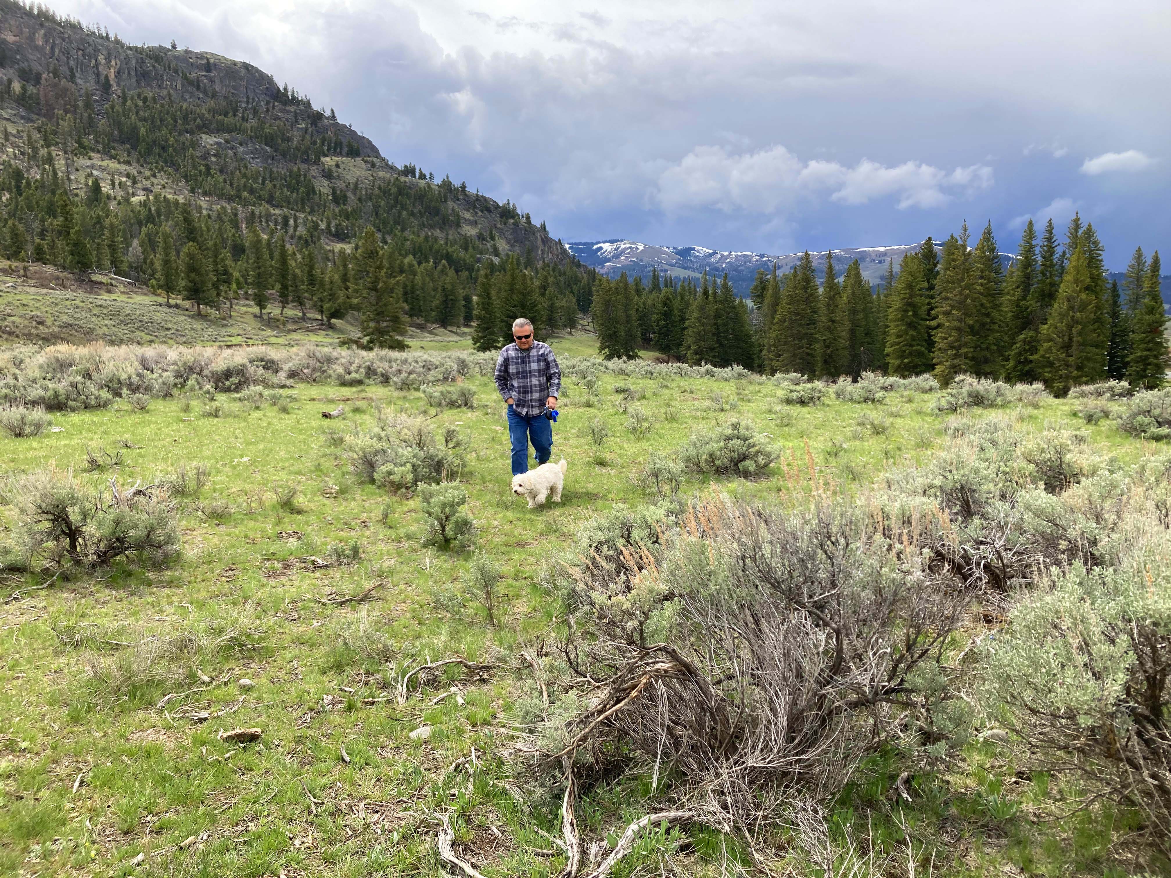 We did get to see some buffalo closeup when we pulled into a side area and it was a great place for Jack to take a walk. He is really good about riding with us long days but we need to find areas he can stop and stretch his legs.