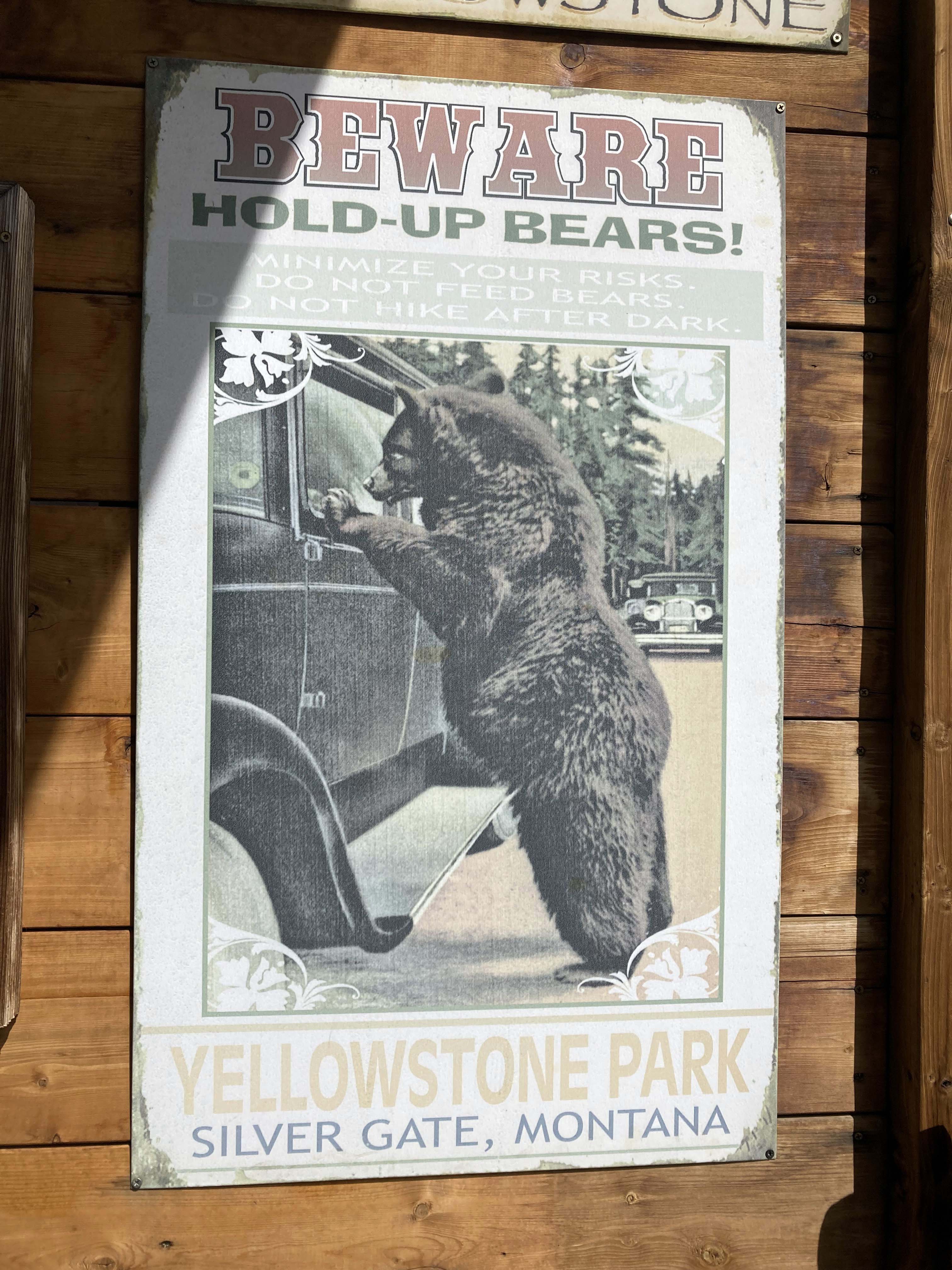 We continued on to Cooke City which is a pretty funky little town. Dogs wander the streets (one had a bandana that said don’t feed me, but he still went up to moving cars and begged for food) and the stores that were open were all owned by free spirits. There is a really nice gift shop there that has a “museum” with stuffed animals and we spent some time talking to the very young owners. Unfortunately the Beartooth highway was still closed so we could not continue on and we had to turn around and go back the way we came.