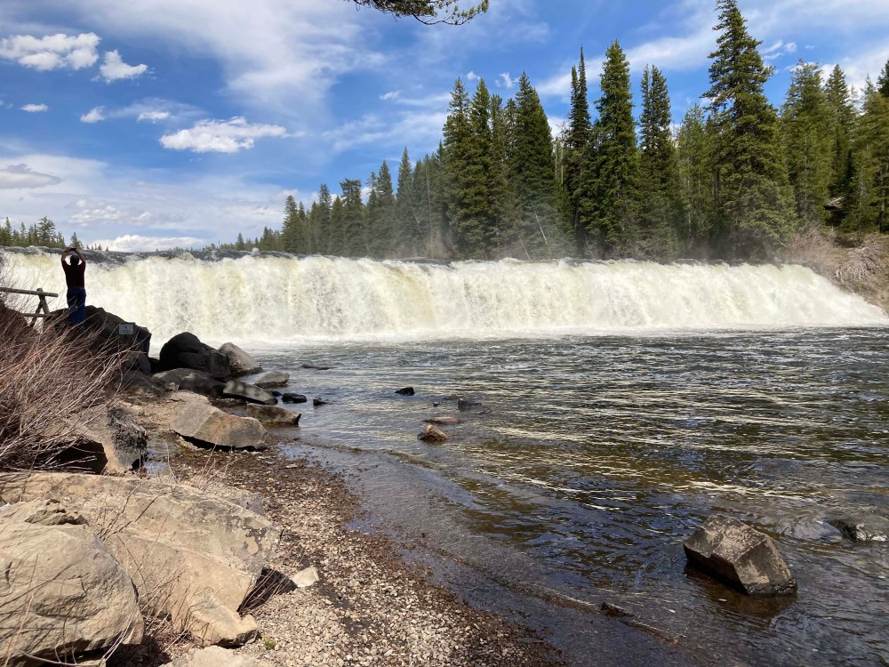I didn’t think much could beat that but then we headed to Mesa Falls. For us Cave Falls was actually better, but Mesa Falls was huge and had lots of beautiful walkways that take you right down to the falls. The Upper Falls section also has a gift shop but since we arrived after 5pm it was closed. First up we stopped at the lower falls which are incredibly special the only bummer was it was super far away and I really wanted to see it close up. We did have the place all to ourselves though which was great since the large parking lot suggests that this is a popular place.