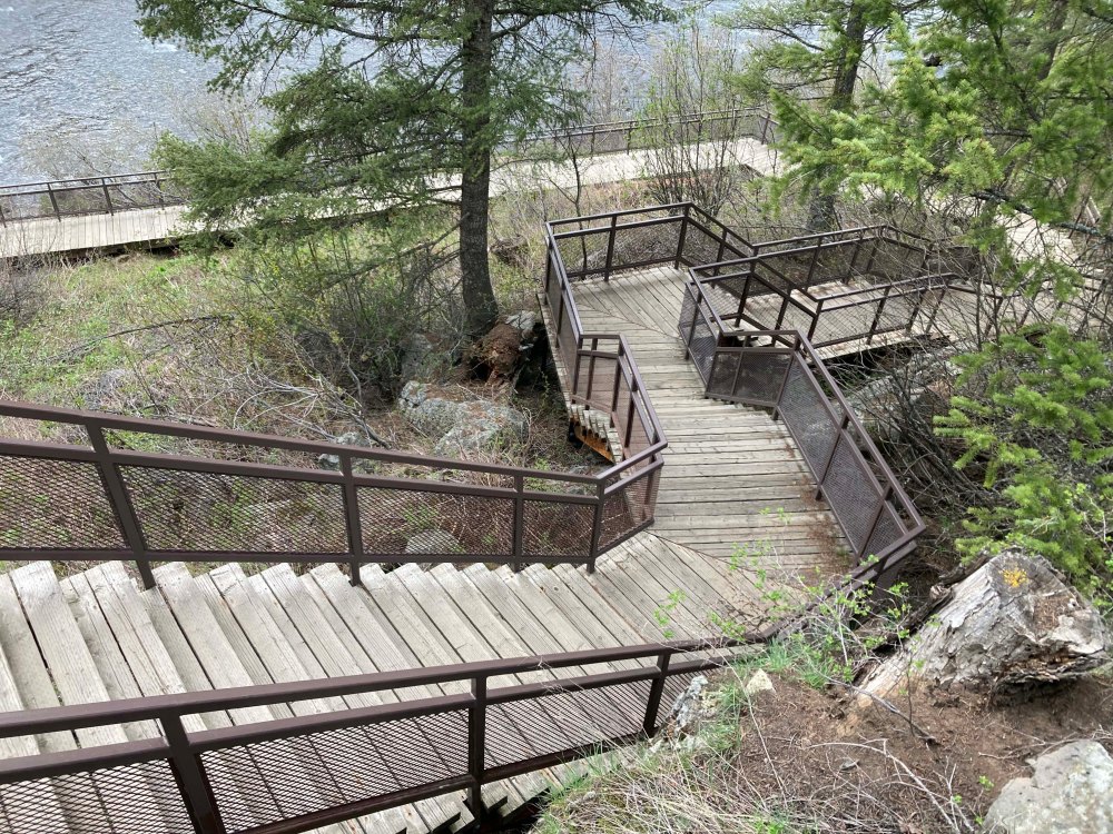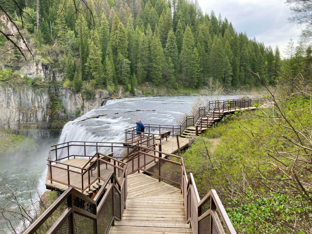 About a mile down the road is the Upper Falls and this area is day use and costs $5. The National Forrest ranger let us stay for free with our America the Beautiful card but I would bring $5 with you in cash. Again this area had very few people and that was really cool. There is a great walkway right down to the waterfalls edge, but let me let the pictures do the talking here.