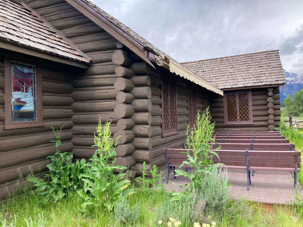 Right before the end of Teton Park Road we saw an Episcopalian Church (Chapel of Transfiguration opened in 1925). I really liked this one because they had a large glass window facing the mountains. It also had outside seating facing the mountain and a beautiful old church bell.