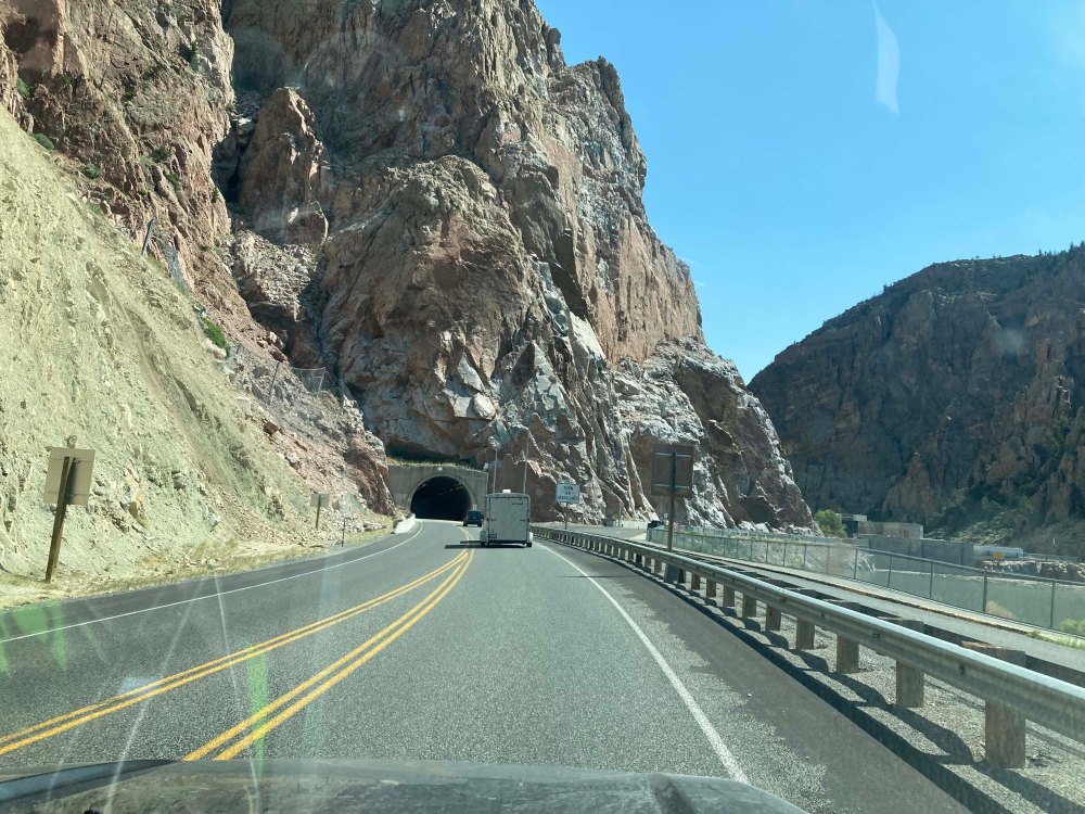 After leaving the Shoshone Forest we drove through Buffalo Bill State Park which has a huge lake and a dam you can tour. Since we had Jack we didn’t do the tour but it looked interesting. They also had some cool old tunnels that we went though. Jack wasn’t so sure what to think about that.