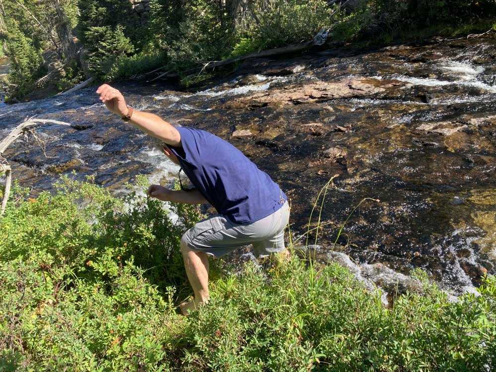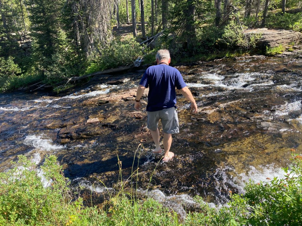 There were tons of berry bushes along the creek and best of all you could walk right out into the water and the stones were not super slippery. I was really surprised when Lee took his shoes off (a rarity) and went into the water. I joined as well and we had a great time walking around. It was a wonderful moment. If you know Lee you understand how unusual this was for Lee so enjoy the moment as I captured it.