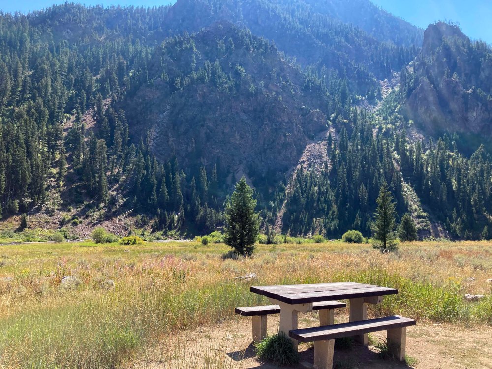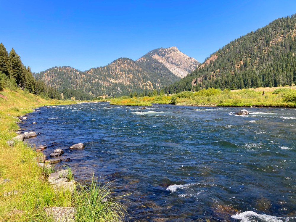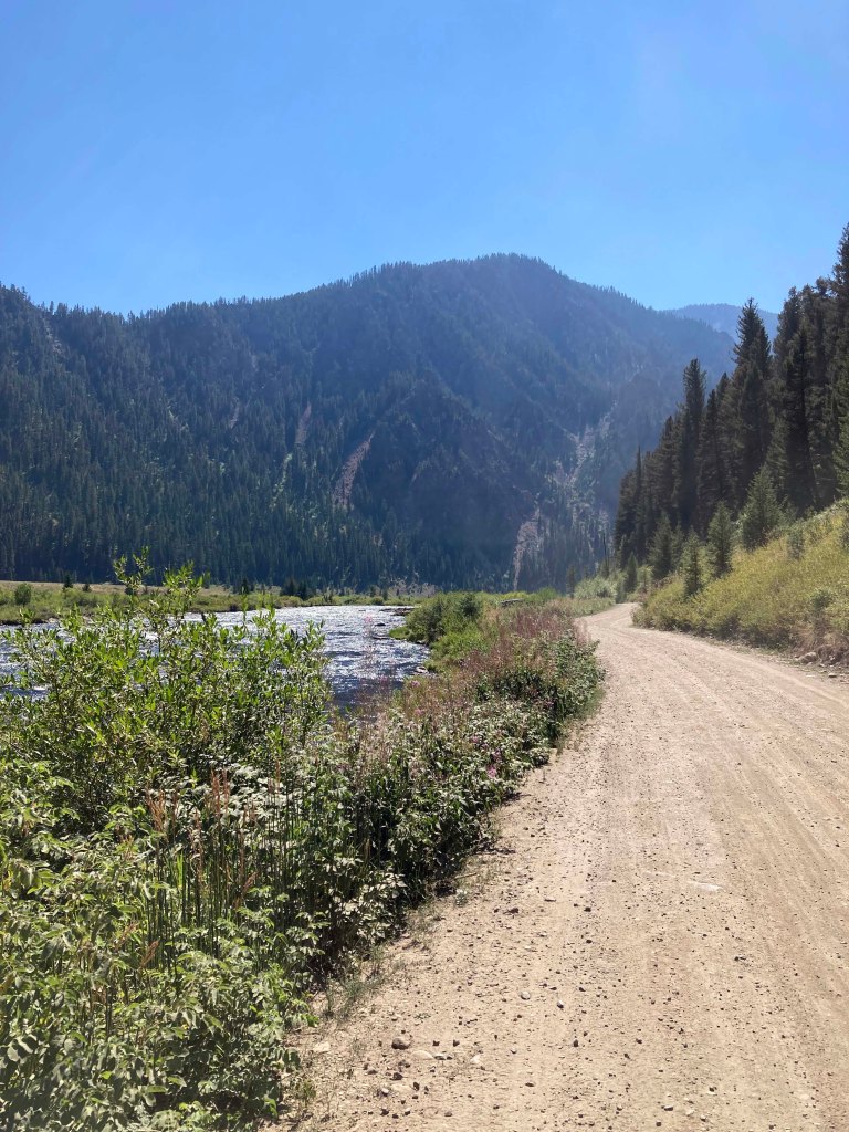 The road goes along a beautiful river with mountains in the background. The area is called Ghost Village and we did see several shacks that had collapsed on themselves across the river. The road ends at a trail that goes into the Lee Metcalf Wilderness area and since bikes are allowed on the trail can’t wait to go back and explore a little further.