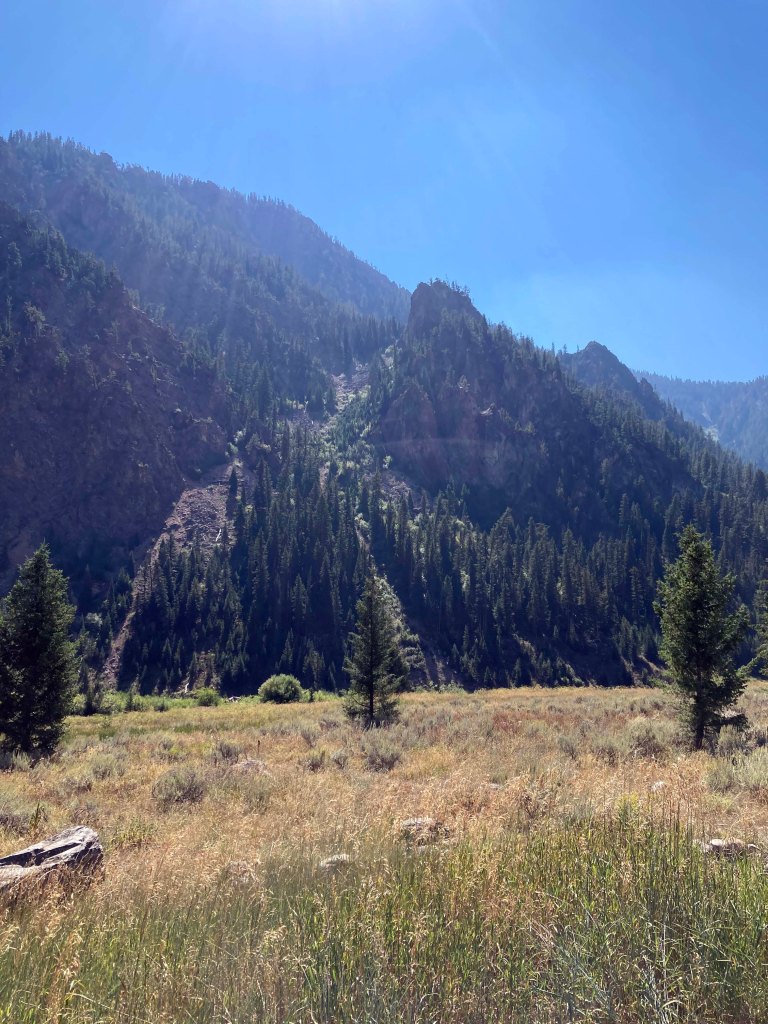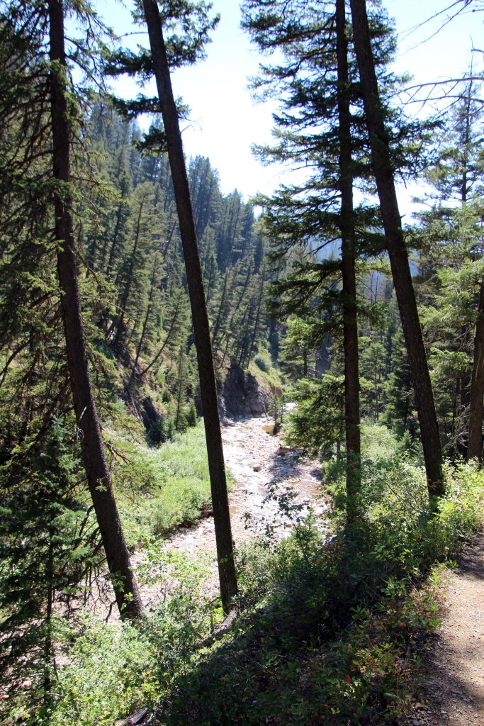 Unfortunately because of the lighting my pictures don’t come close to capturing the majesty of this area and it really felt like we were in the wild. After staying for a bit we went back across the street to try out the Cabin Creek Trail. The Forest Ranger in the Hebgen Lake Ranger District recommended the trail although she said the first couple of miles were the best part in her opinion. Unfortunately it got pretty hot pretty quick and the trail itself was VERY rugged. It was also multi purpose so between watching my footing, avoiding the steep drop off, and dancing around horse poop I felt like I had to watch my feet most of the time.