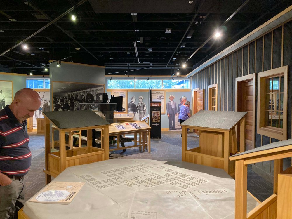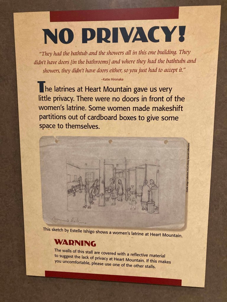We had about 15 minutes before they closed so we skipped the movie and headed straight into the museum. First I had to use the restroom and was surprised that they had mirrors in the stalls. There was no privacy in the interment camp in the restrooms and they wanted to simulate that.