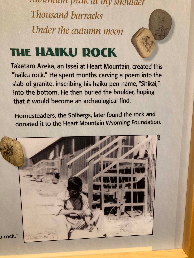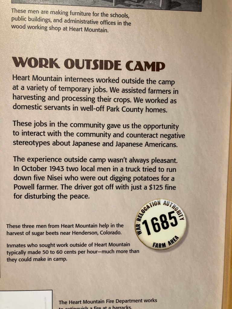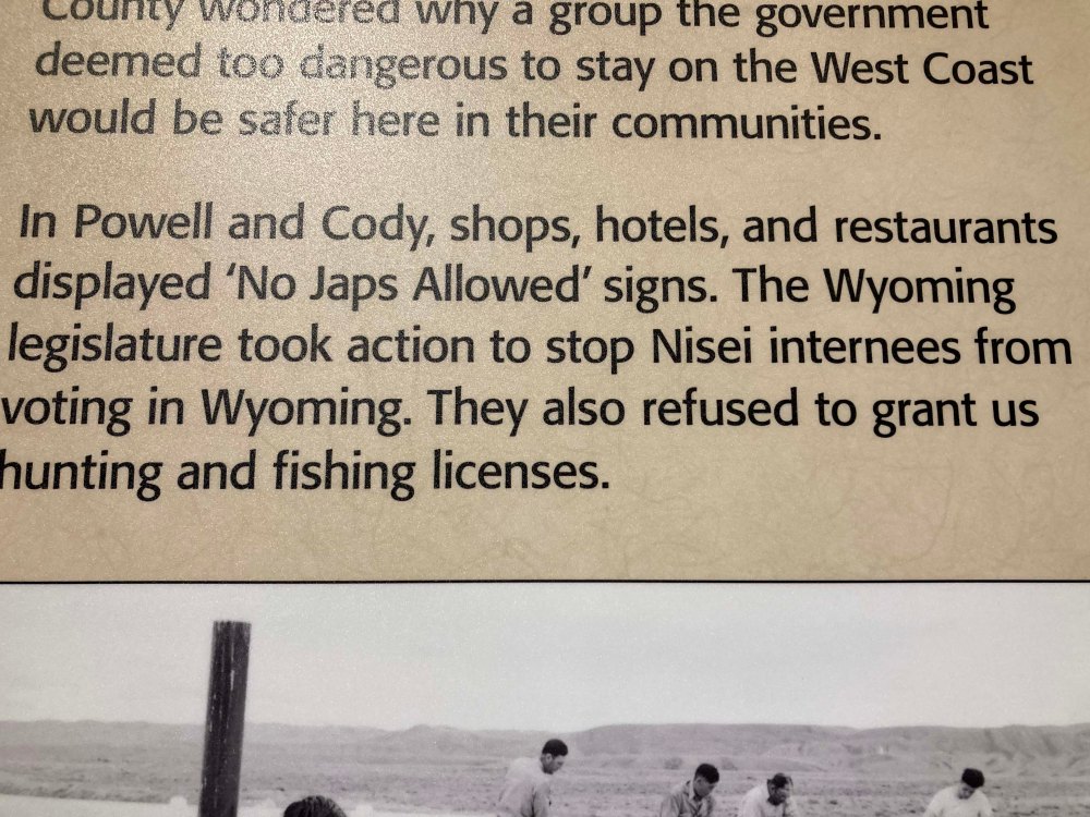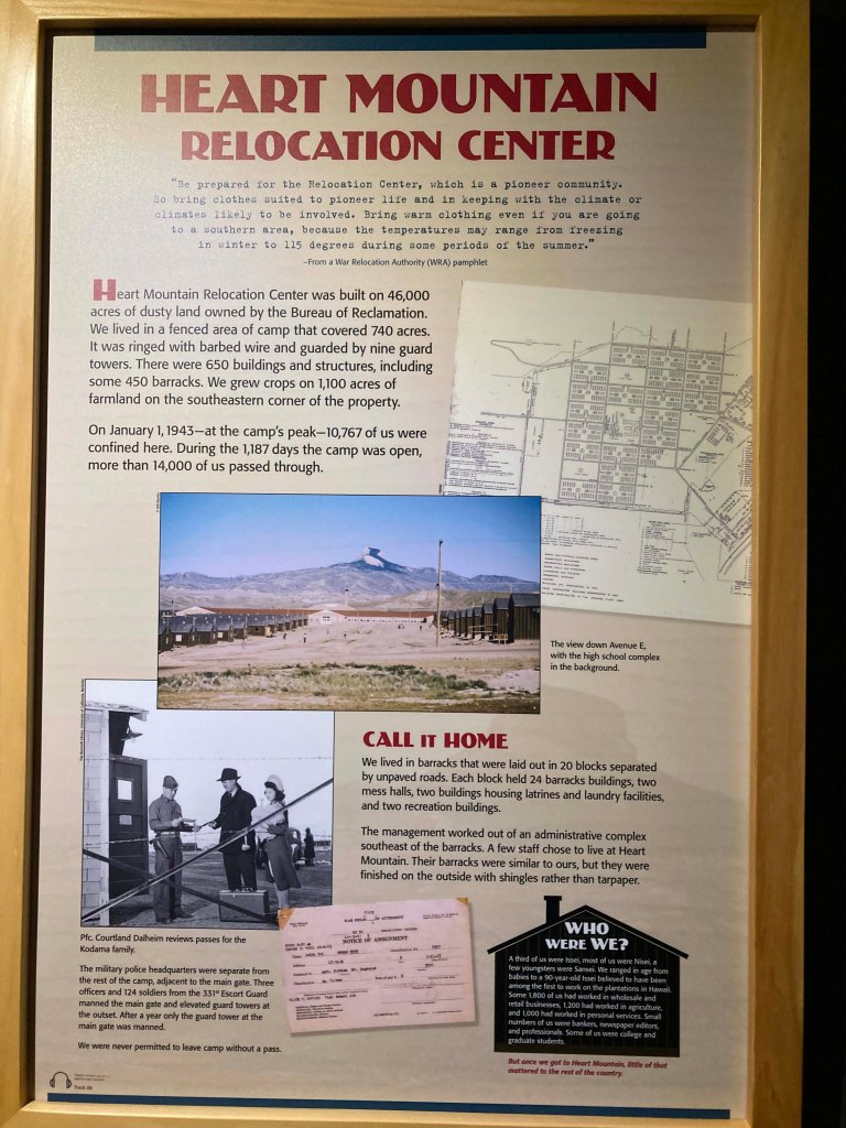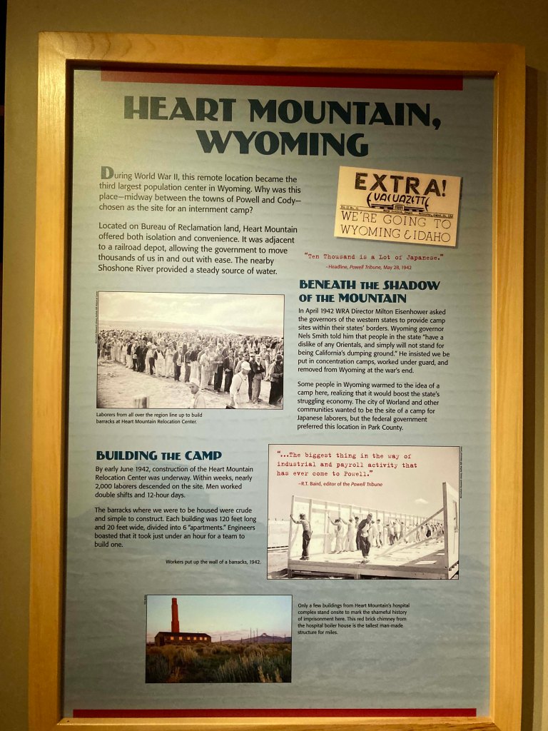 The last horse we saw looked pretty thin, but Lee thought it was probably OK. Resources are scarce in these desert conditions which is why the BLM carefully manages the population. It was a really cool drive and when we came out on 14A we headed back towards Cody. In a little while we were surprised to see a Japanese Internment Camp Museum in the middle of a huge field. We have passed by several of these in our travels but never seen one that was open so we stopped at Heart Mountain Japanese Internment Site.