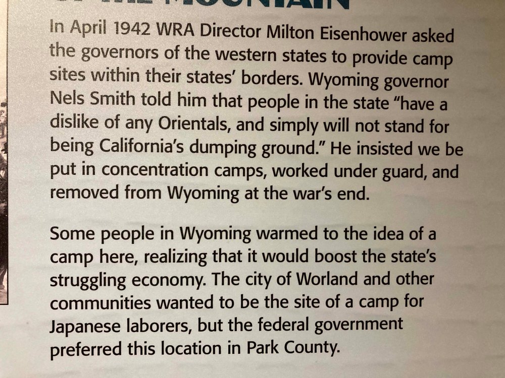 The governor of Wyoming did not want the Japanese in the Cody area and only accepted them after a personal appeal by Dwight Eisenhower under the condition that they leave the area immediately after the war was over. The local towns gave many of them trouble as well refusing to serve the Japanese in town or even in some cases physically attacking those found outside the camp. One major exception to this was the largely Mormon town of Lovell who openly supported them.
