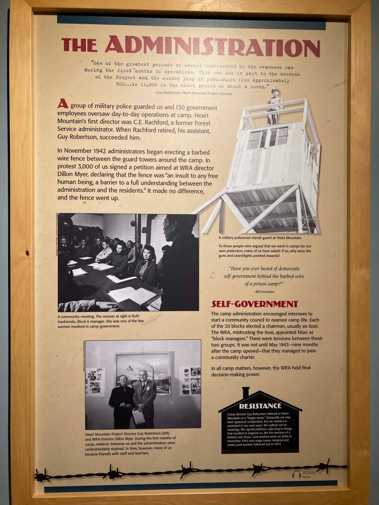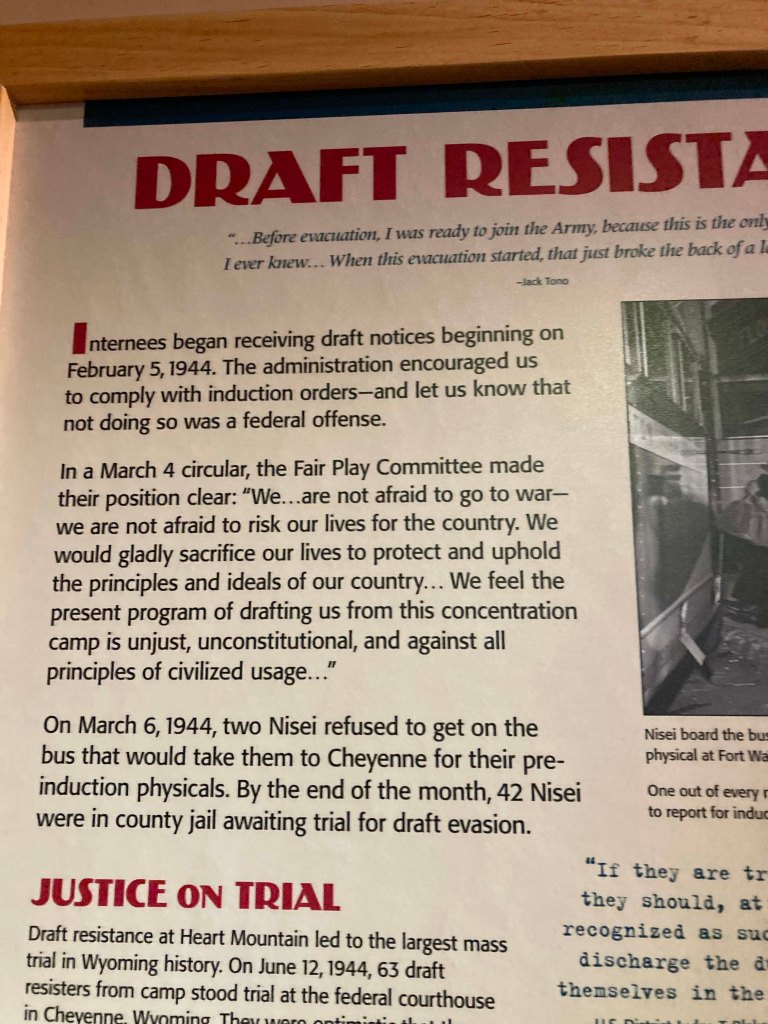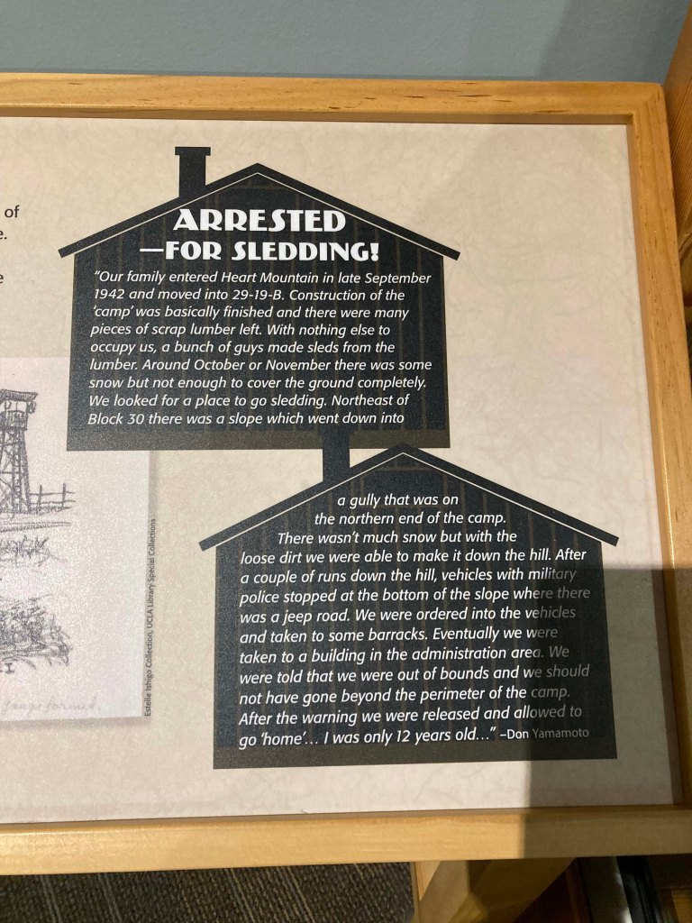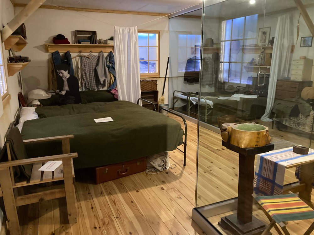It was an odd mix of rules and restrictions in and around the camp. Some people were allowed to work outside the camp while others were punished for something as simple as sledding on a hill outside the wires. They had their own newspaper and camera club, but they were also ill equipped for the weather and crammed into small spaces with no privacy. Some young men had the opportunity to serve in the war and gain their freedom, but those that refused were prosecuted for draft evasion which is pretty crazy when you think about it. They were being treated as prisoners of war.