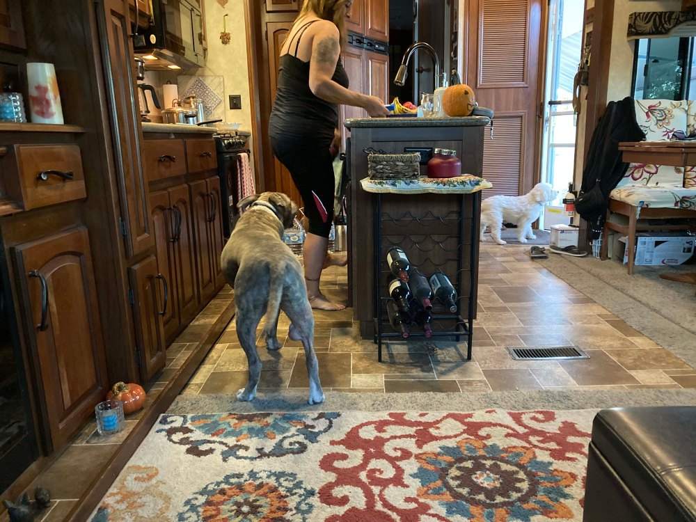 Anyway, we explored locally and then a couple days later Steve and Deb arrived. We coordinated with them and grabbed an open spot first thing in the morning so when they rolled in around 2pm they were all set. It was so great seeing them and seeing Hurley who has gotten older but is still a sweetie. Lee made them a chili dinner for arrival and the conversation picked up just as if no time had passed. There is something special about this lifestyle where you can see people after long stretches and the relationship is still there.