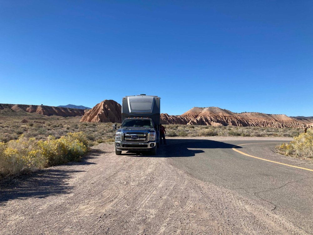 After Great Basin we headed south to a Nevada State Park called Cathedral Gorge. This park was recommended to us by our friends Deb and Steve and we were also going to meet up with them there. It has been three years since we have seen Deb and Steve in person and since our last meeting we have all survived COVID and become grandparents!! We first met them back in 2014 at the RV Dreams rally and have been lucky enough to spend lots of time with them over the years.