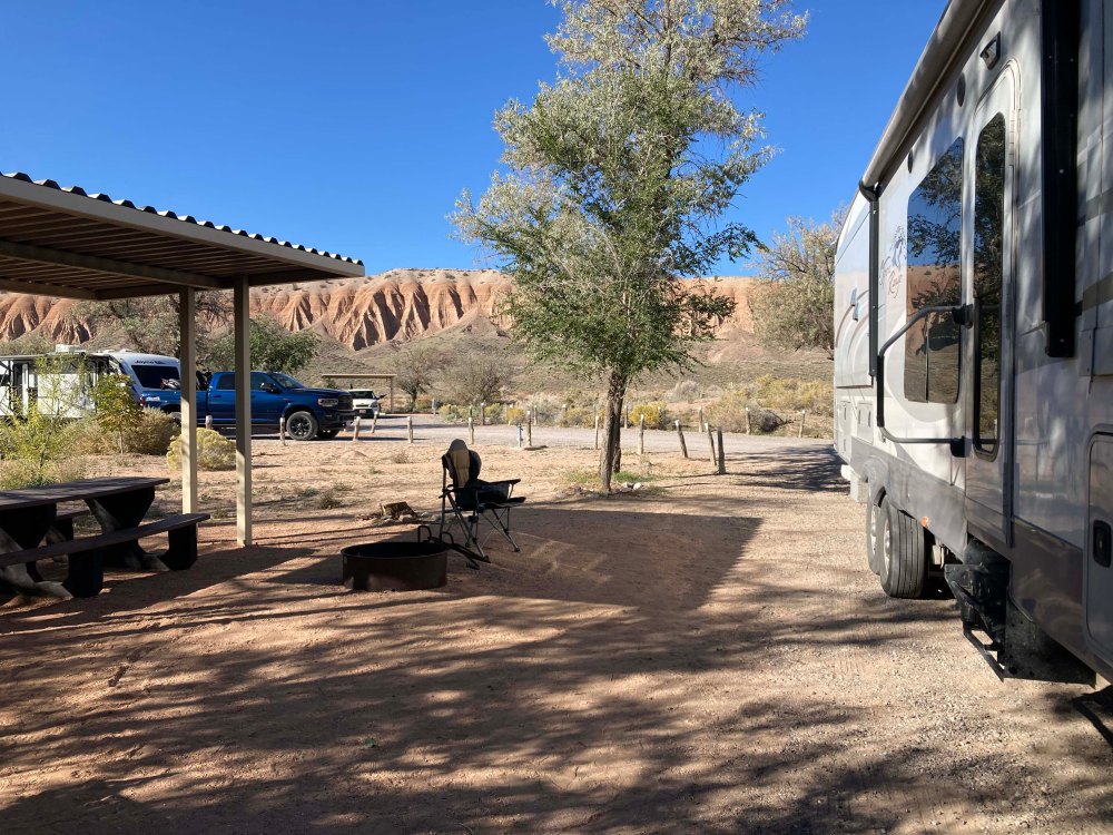 As I said, Deb always finds the coolest places and I wasn’t disappointed when we pulled into the park. These state parks are all first come first serve (that’s changing in 2023) and since we came on a Saturday it wasn’t surprising that they were full. Thankfully though there was room in overflow and Lee and I picked a spot and stayed hitched up so we could have our choice of open spots in the morning.