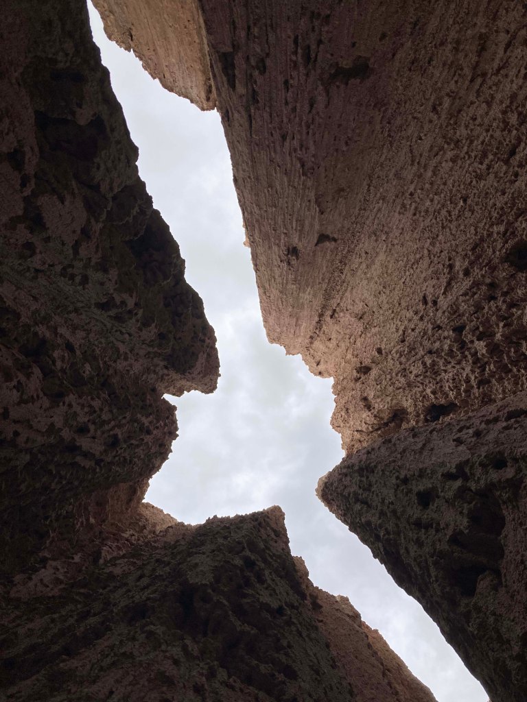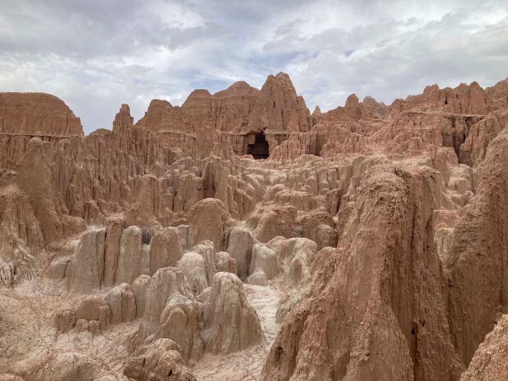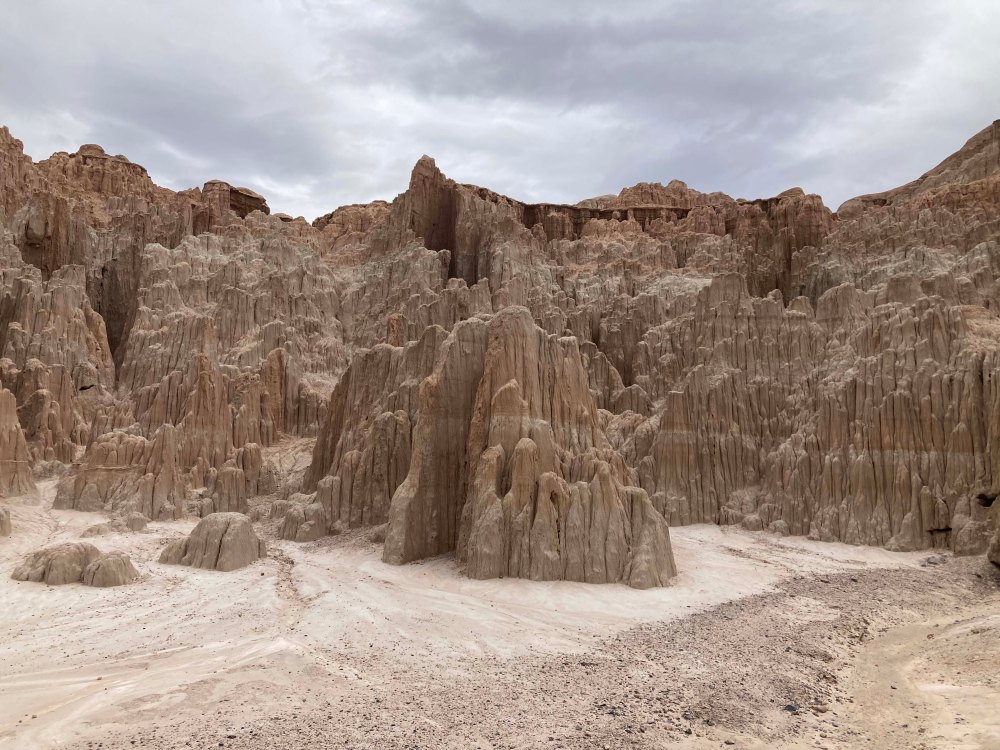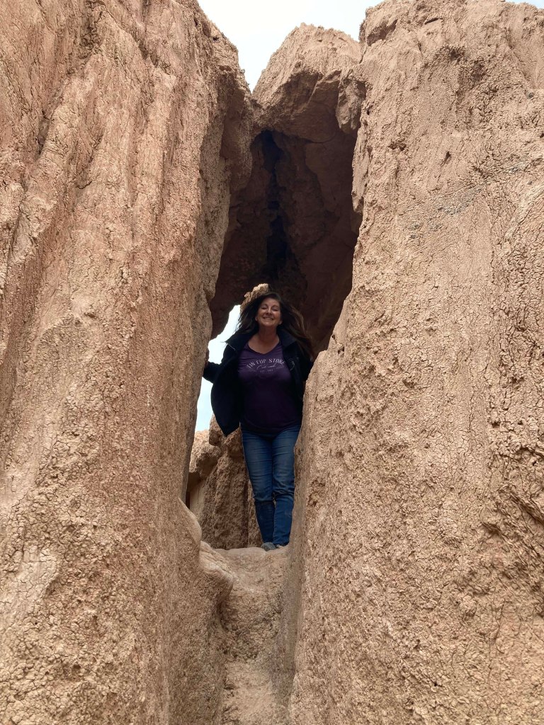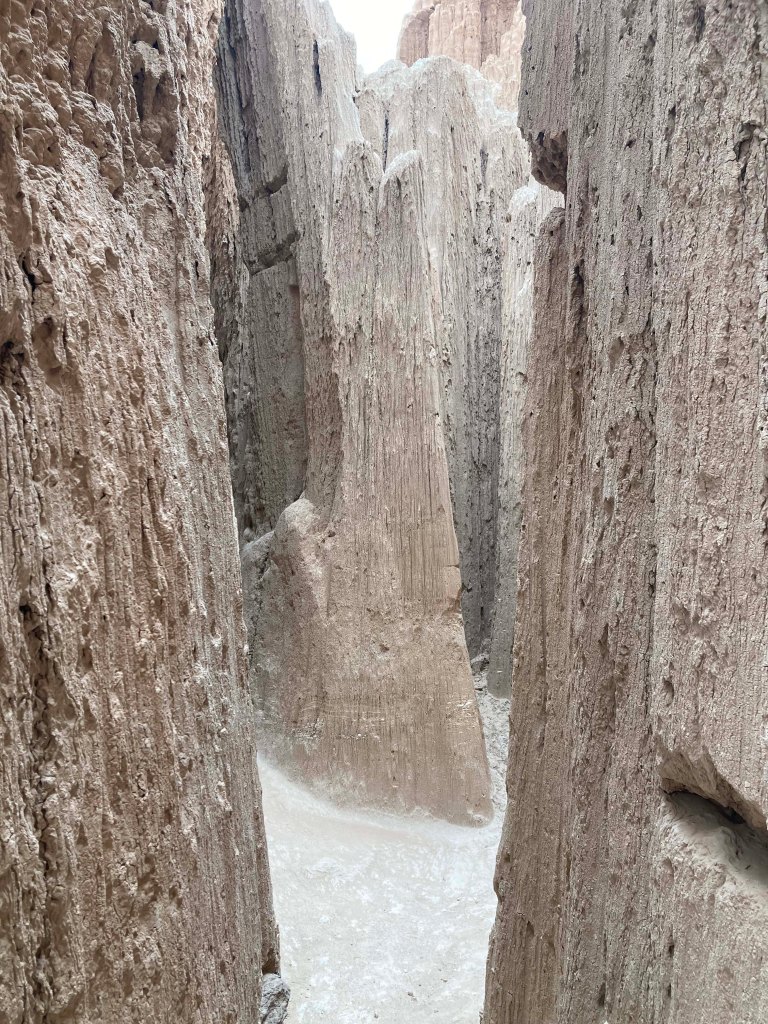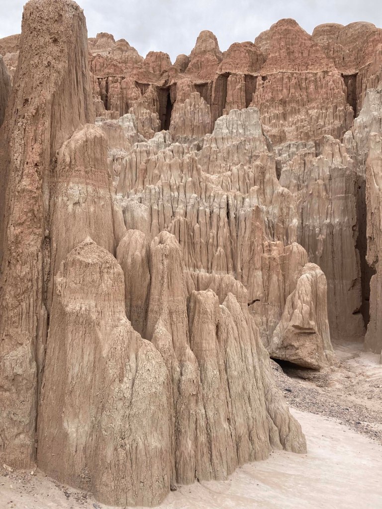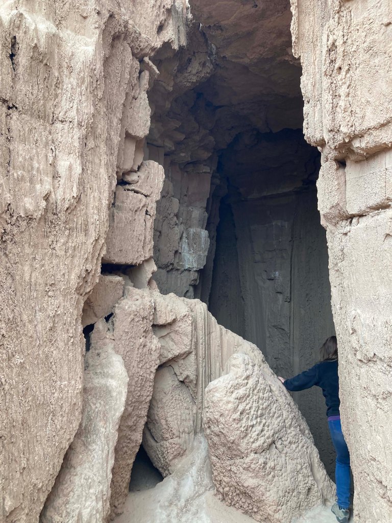 The absolute coolest thing we did though was explore the slot canyons in Cathedral Gorge. We all love slot canyons and although these are relatively shallow there were tons of them. We spent a couple of hours exploring them and got the most beautiful pictures. The coolest thing is you really can’t tell from far away they are all there, so we walked along the rock border and explored most of them.
