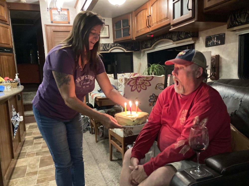 The best time we had though was celebrating Steve’s birthday with him. Over the years we have been able to celebrate birthdays with most of our friends, but Steve is usually with family on his. Over two nights we have a couple of great meals, a campfire, and some huckleberry margaritas…yum. So very glad we got to spend time with them and we all promised it would not be three years before we met again.