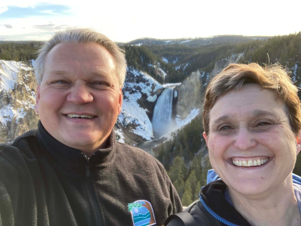 Hubby and I have two daughters and four grandchildren. We are a very close family. After hubby retired (10 years prior to my retirement), he cared for the grandkids – picking them up from school and taking them to basketball, soccer and ballet. He did this for many years. Before I retired, I told my kids that we were going to travel once I stopped working. After attending an RV Dreams Rally, we bought a 5th wheel and went full time.