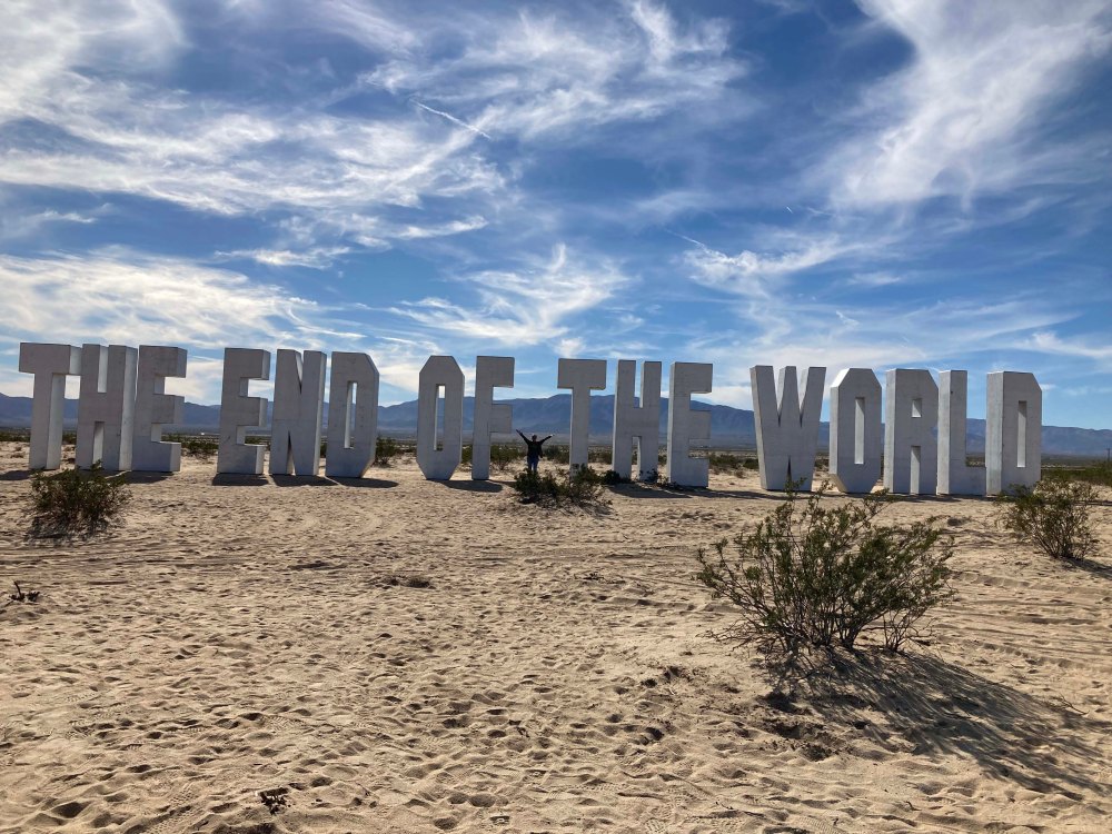We often use our Roadside America app in places like this and it leads us to the coolest stuff. This time it led us to an incredibly cool The End of the World sign which is a huge installation in the desert. We loved taking picture there although I will say there was someone else waiting for their turn and Lee said it was just our luck to be alone at the End of the World and someone else shows up!