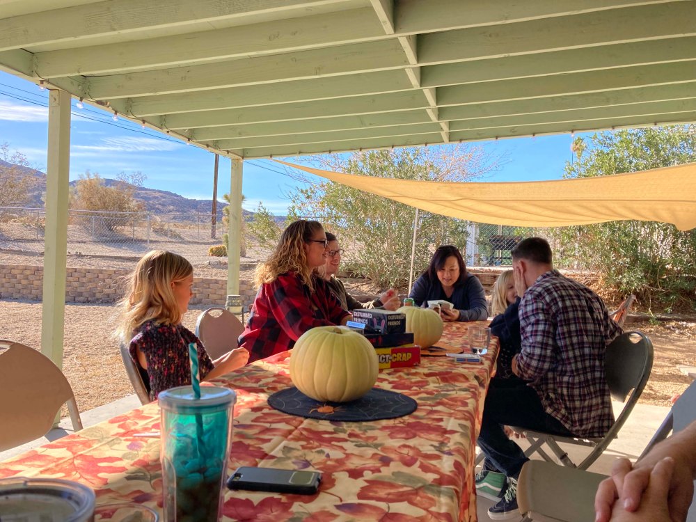 The best part though was our friend Linda’s daughter lives in 29 Palms. She works at the military base and Linda and Rick came up from their volunteer gig to spend Thanksgiving week with them. They also stayed at 29 Palms and her daughter invited us along with some marines from the base to her dinner. The food was excellent and the company was great and we were so grateful to get to share in their meal. It was our first time eating a Thanksgiving dinner outside. The weather was gorgeous.