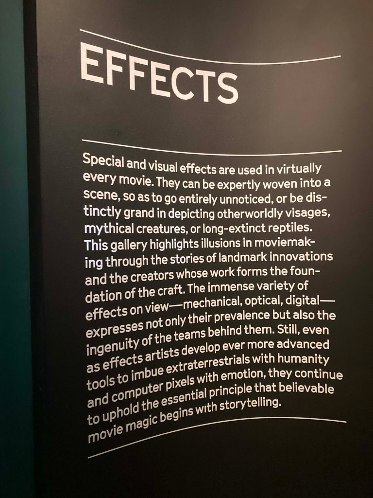 I am going to say right up front that I was pretty disappointed. The good news is the museum is only 14 months old and is still figuring out what it wants to be. There were large sections of space that had TV screens with movie clips and then other sections where a big topic was jammed into a small section. I get it, the Academy covers a lot of topics but almost all of them in my opinion were done somewhat poorly. There were a couple of stand outs though and the $25 ticket was reasonable enough that I was still glad I went.