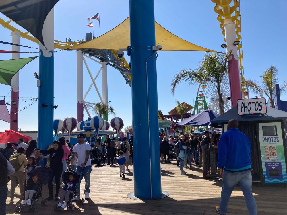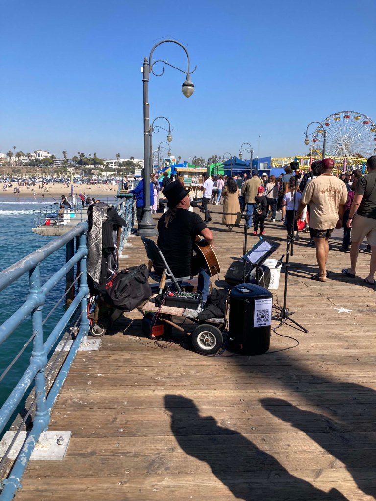 As we got past the carnival area there was a place where people could fish and there were several musicians and street artists which was nice. We saw two enterprising young women dressed as LA police but I was more impressed by the young woman who was dressed as Sherlock Holmes. Both groups were busy taking pictures with tourists.