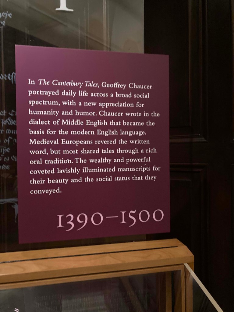Next was the library, and it blew me away. Not only did they have works from the 1390’s they had the Canterbury Tales. Beautiful manuscripts and gorgeously illustrated.