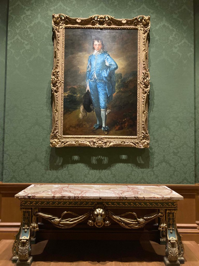 My favorite though was The Blue Boy. I remember this painting from childhood mainly because of the outfit and the look on his face and I had no idea it was in a private collection in California. I always assumed it would be in a museum in Europe and I was thrilled when I walked into the gallery and saw the painting. I was so shocked I asked a docent if it was the original painting and she smiled somewhat indulgently and said yes it was. I was blown away and spent a lot of time looking at the painting. It was hard to get a picture without glare because of the lighting, but here is the best I could get.