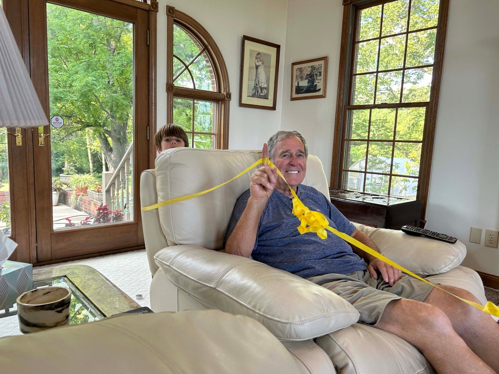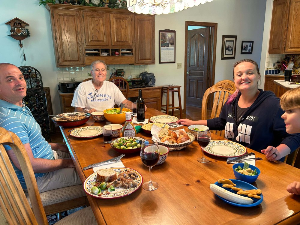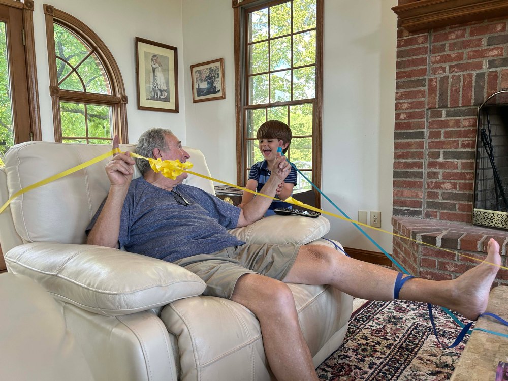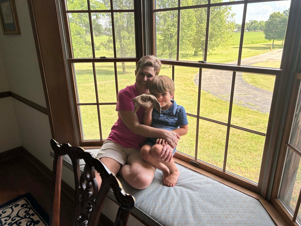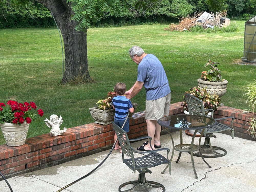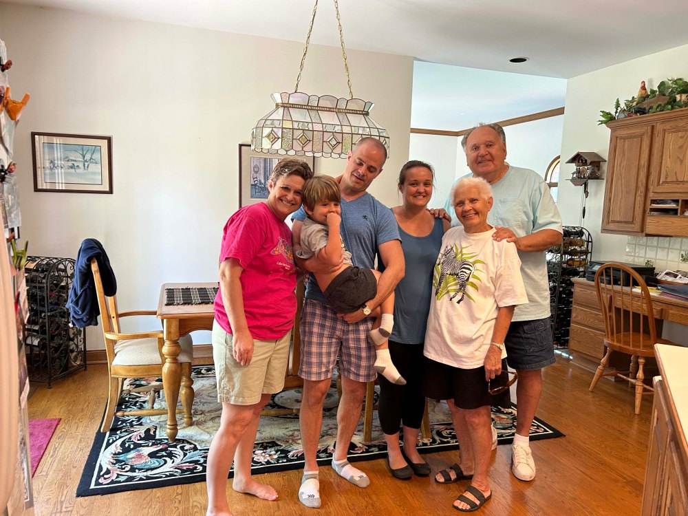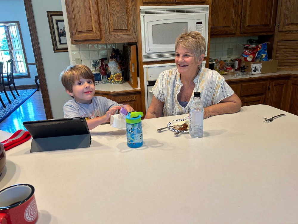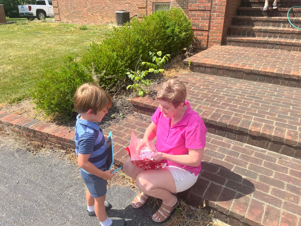 As much fun as all the reunions were, the absolute best part of my week was seeing my grandson Oliver. Up until this point I have only seen Oliver at his house, but my daughter Kyrston and her husband Jeremy were kind enough to drive 12 hours from South Carolina to Ohio to spend the week with me and my Dad. It was a long car ride but Oliver was “near perfect” largely in part due to the ingenious idea Kyrston had of giving him a small “new to him” toy every hour. When they finely arrived I was overcome with joy and absolutely loved the picture he had drawn for me on the ride up. A picture is worth 1000 words and I was lucky Jeremy captured the moment.