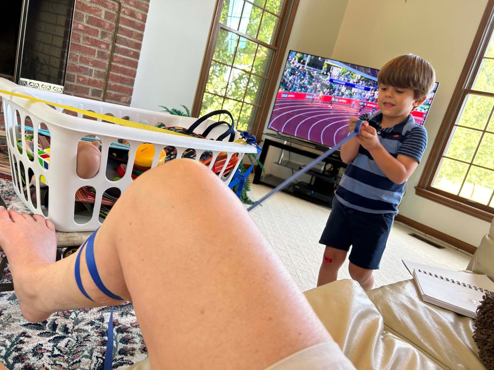 The most fun game we played was when Oliver took painters tape and tied up Papa and I while we were watching the Olympics. It was super fun and I highly recommend buying painters tape for any kids you have in this age group. It sticks but not permanently and makes a fun spiderweb.