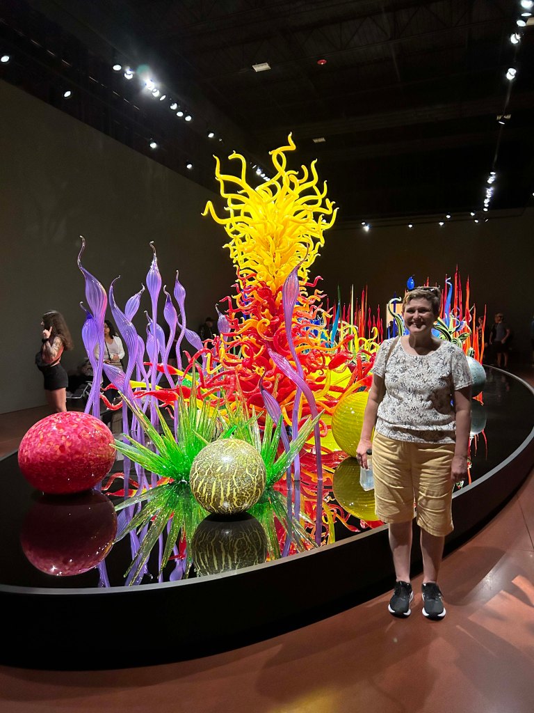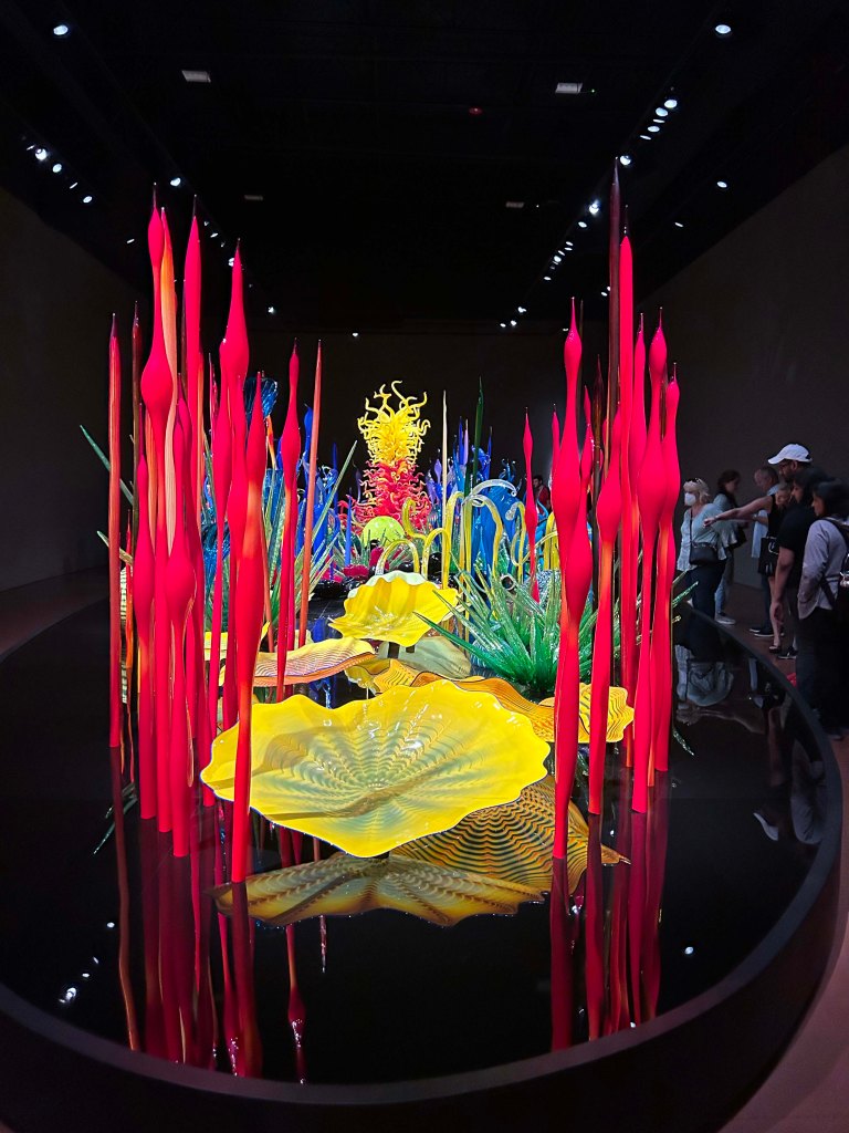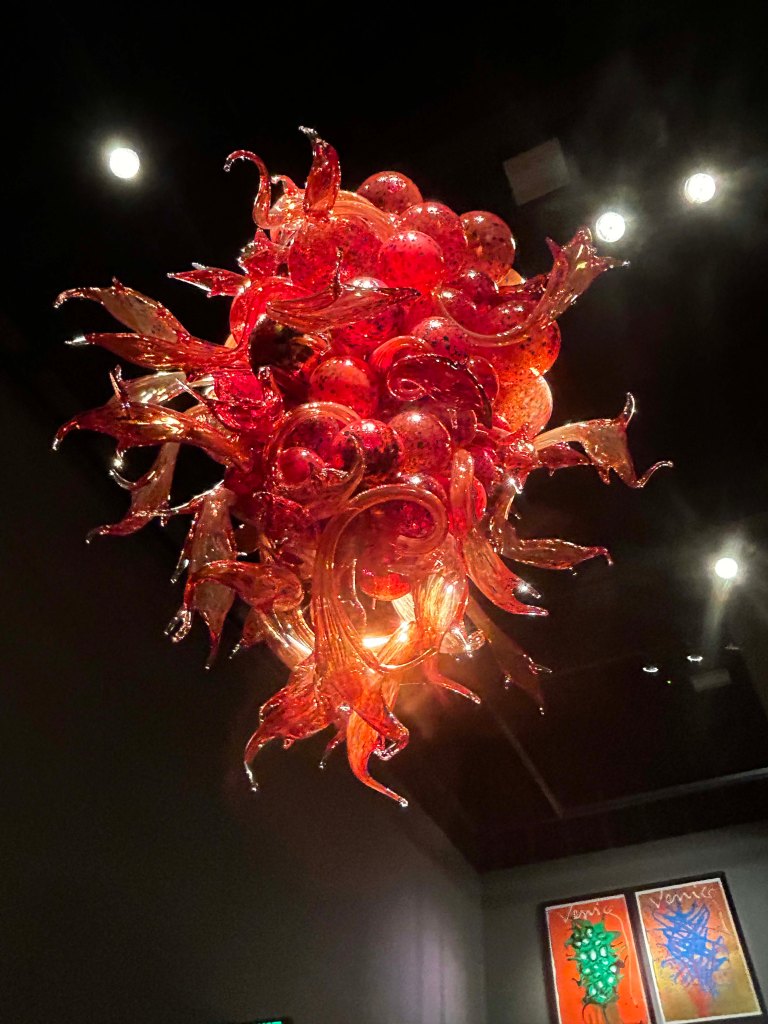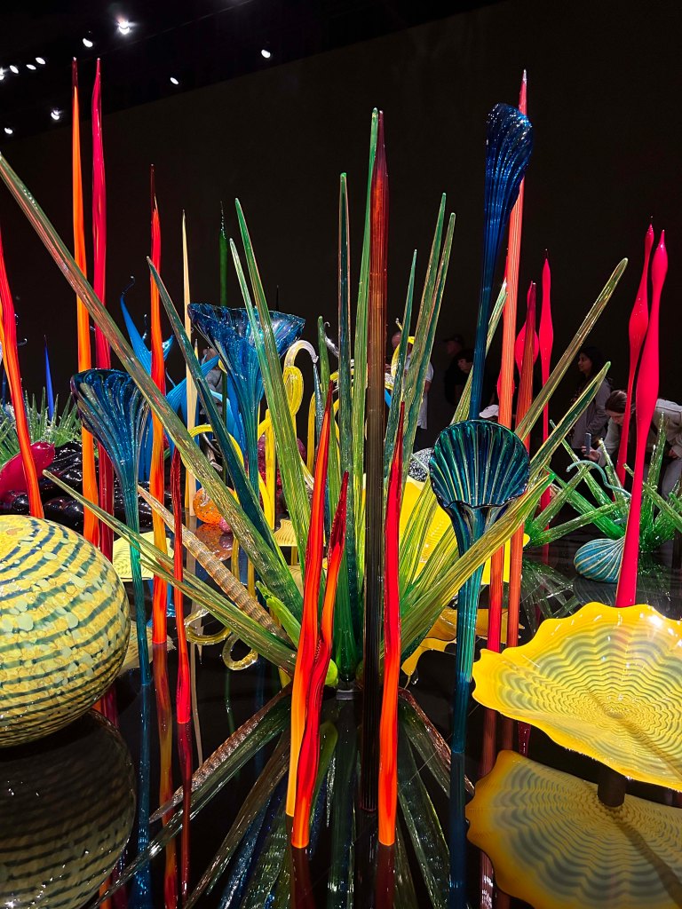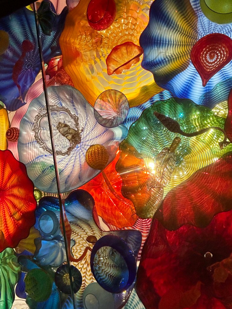 I understand how that boat with the glass pieces might not be impressive in the museum setting, we’ve seen very similar Chihuly work in the Denver botanical Garden and the Phoenix Botanical Garden, in a lake setting, very impressive and cool to see outside in a garden. Given that we lived in the Puget Sound for 11 years, we saw a lot of his work and he set the standard for the artists in the area. We are always happy to see a piece or two of his artwork in our travels. It’s amazing to see how many unexpected places it shows up.