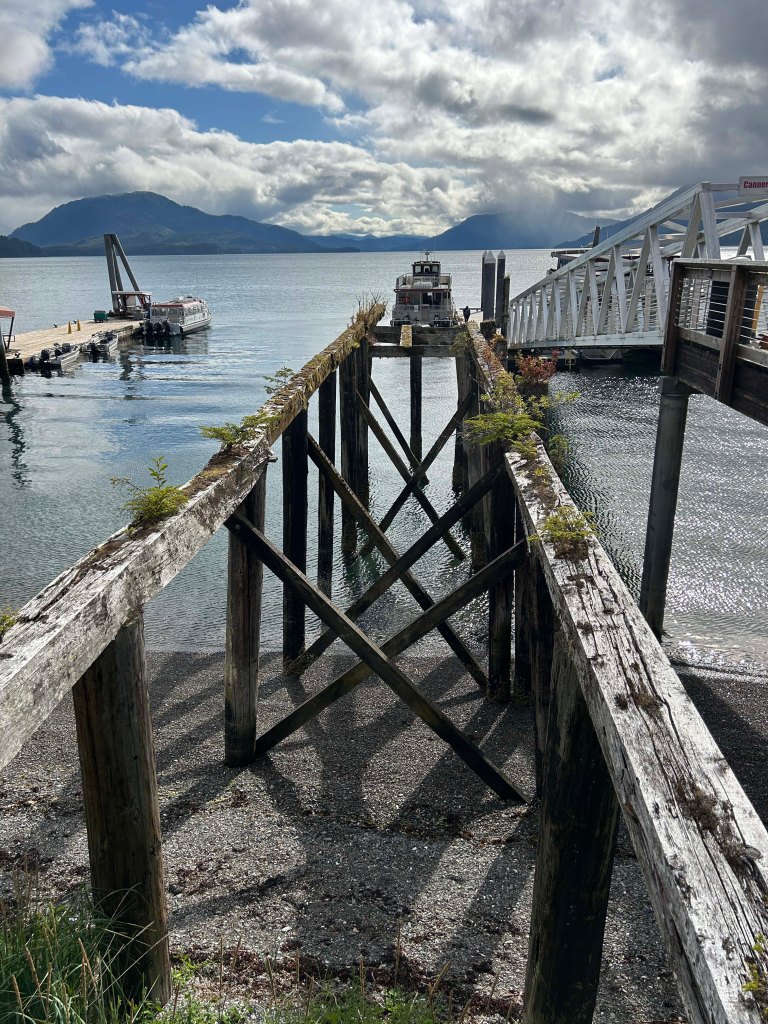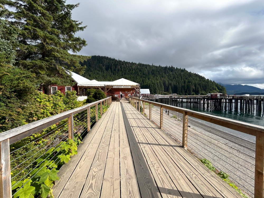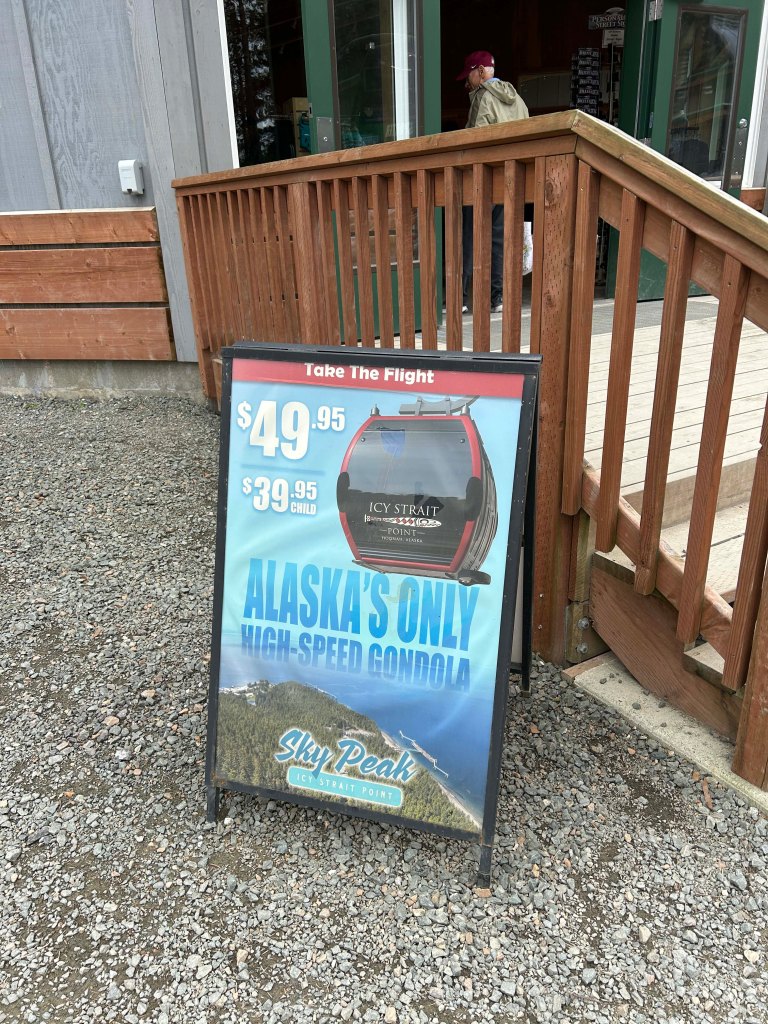 The next day we landed in Icy Straits and it was such a small town I actually signed up for a whale watching excursion with Mom. I’ll talk about that more in the next post but first we toured the little town where most everything was closed. They did have a cool (and free) sky cable to take us to the little town and another for $50 that went up to the mountain and you zip lined down. We skipped the pay version and instead wandered around a bit.