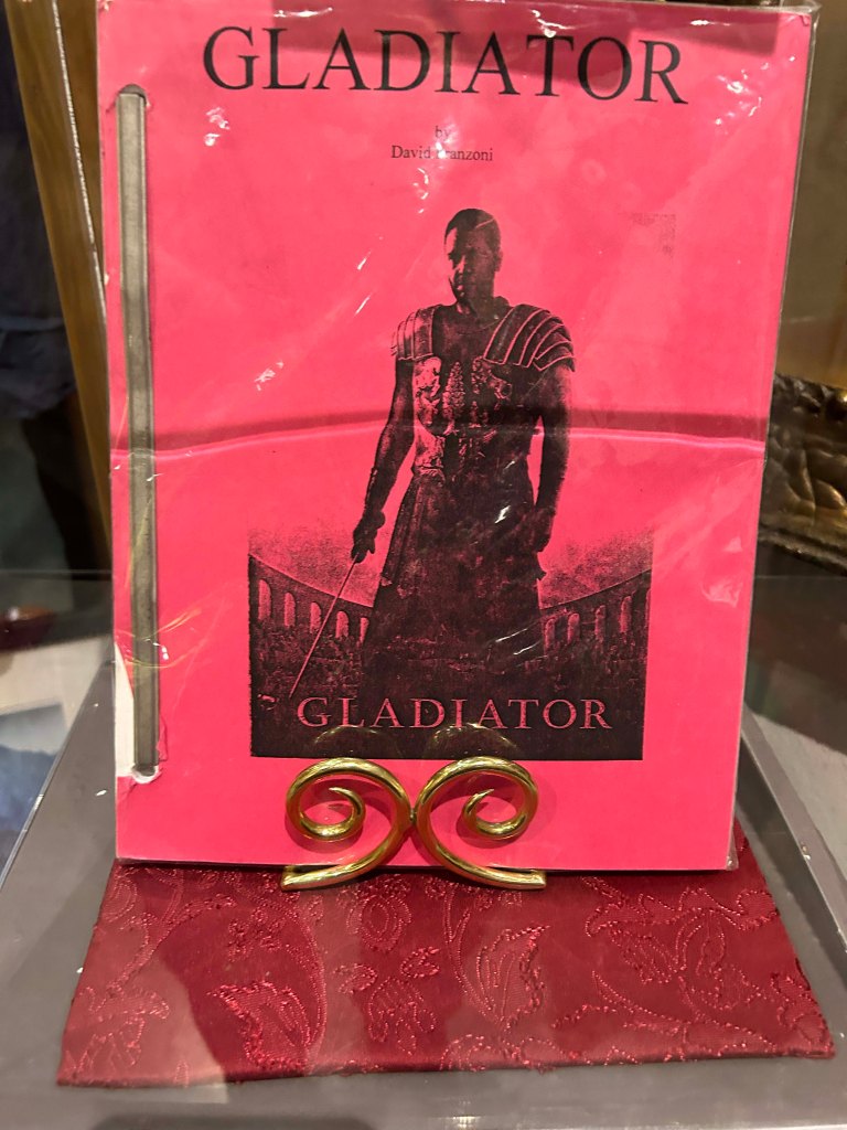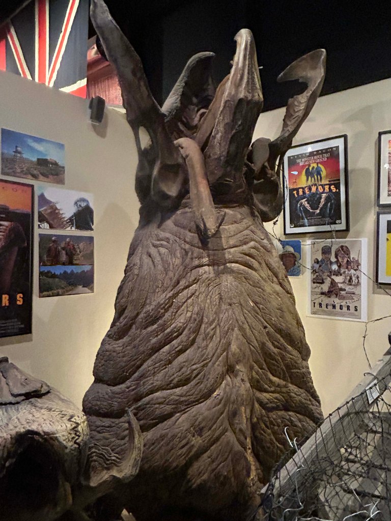 Lee’s favorite area showed stuntmen gear. They had a pristine example of a “jerk vest”, which he had only read about but never seen in person, that was used to pull people in whatever direction needed for gunshots and explosions. There was also a wooden chest plate that was used to shoot people with arrows. It also had a trick arrow that was invented so it looked like an arrow hit someone. That section was pretty cool and included a full sized movie truck that was used to film horse chases. Lee got pretty giddy over that 🙂