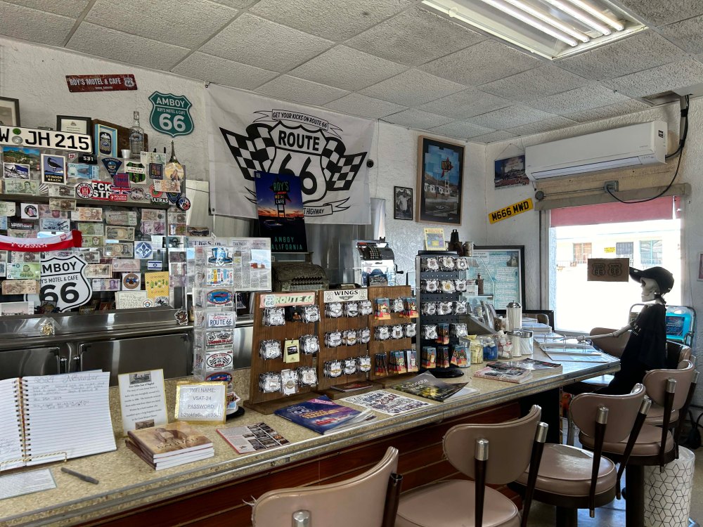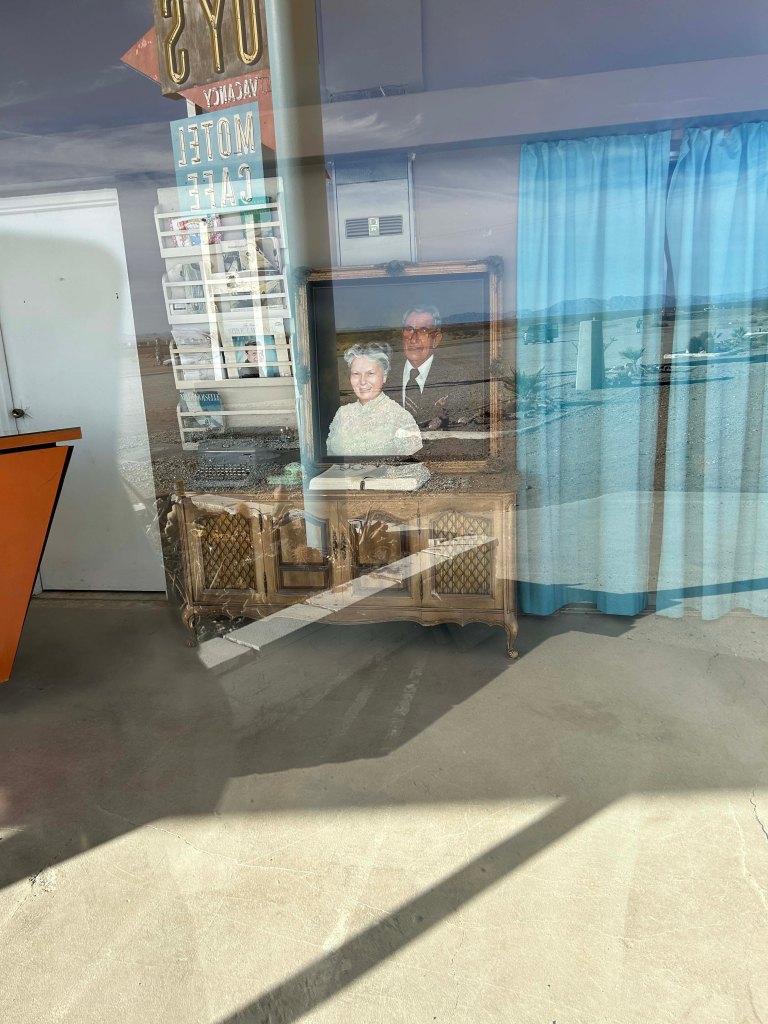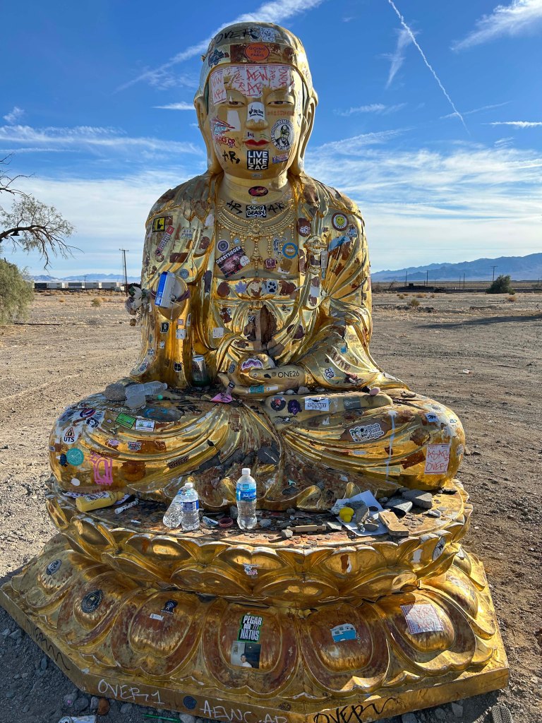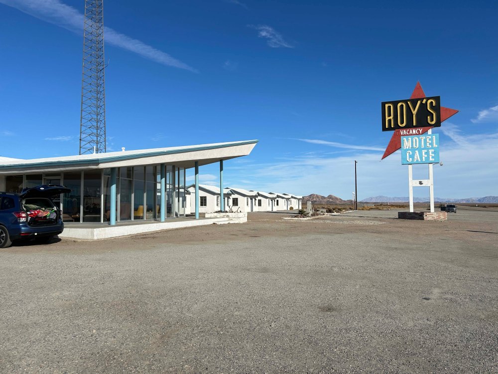 In addition to the preserve we traveled to the outer edge where it borders old Route 66. Although a major portion of the road was closed because a bridge was out we did get to explore some of it. One of the coolest things was Amboy where the historic Roy’s is in the process of being renovated. It is an iconic Route 66 place and Lee absolutely loved it. Albert Okura (owner of Juan Pablo restaurant chain) actually bought Amboy for $480M dollars and paid $100K to restore Roy’s. As a side note there is a large buddha statue by the side of the road in the desert. Really interesting.