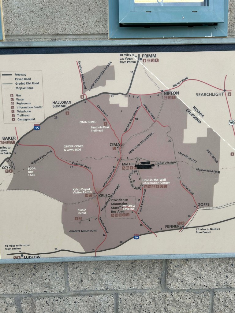 Other small towns included Ludlow and Baker. Since they are on the major freeways they have some services and they all have a mining history.