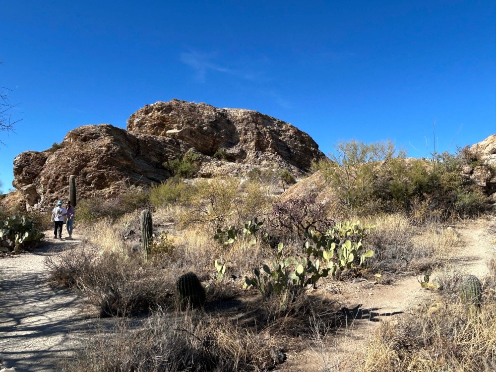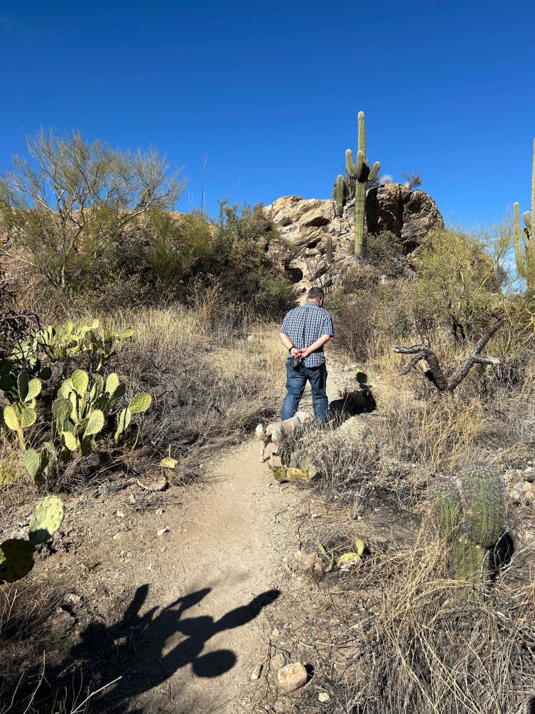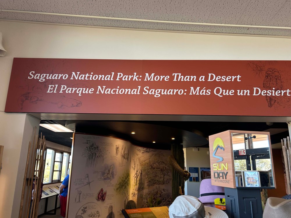 We decided to take Jack in the hope he could get some exercise and I was pleasantly surprised at how dog friendly this portion of the park is. As always we started with the visitors center and got a hiking map from the rangers. We are not big hikers in general but I always like to see the hikes available. The visitors center was on the small side but had a great gift shop and I really like the display about what the inside of a Saguaro looks like. Plus it’s amazing to see how old the tall ones are.
