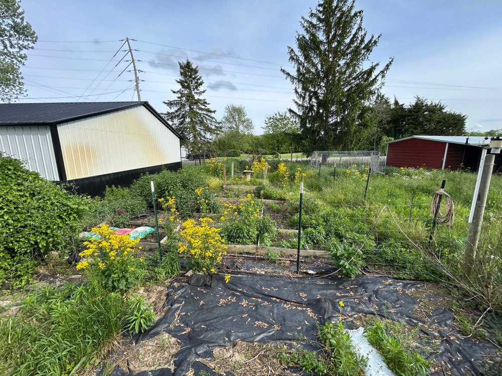 So let’s get to the best part. It’s amazing how much the weeds grew in the 30 days from the showing to close, but it has a HUGE garden with beds and some metal structures. A practically new small two stall barn (the former owners had alpacas) and 4 fenced in pastures. The property also has a large wooded section in the back and at 3 acres is exactly what we wanted.