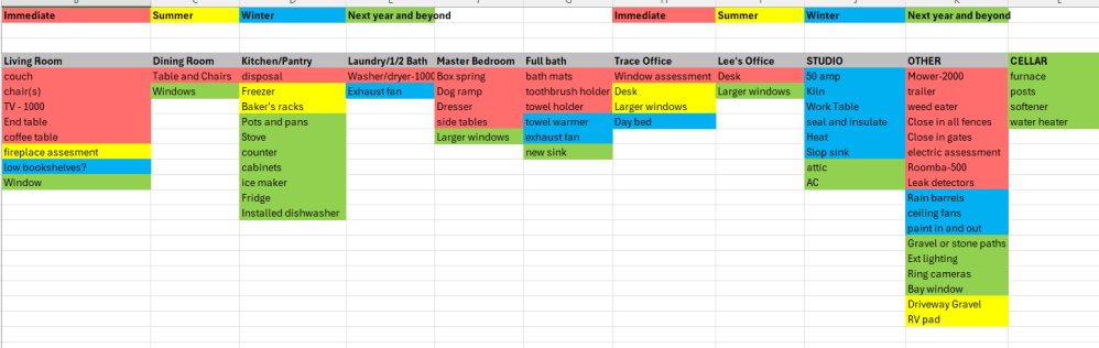 1. Change of lifestyle…that is the key. Very happy for you and your next chapter…the house looks lovely and seems like it has all the key things you need, and the spreadsheet, well…no words for your organization!~~~IMPRESSIVE!