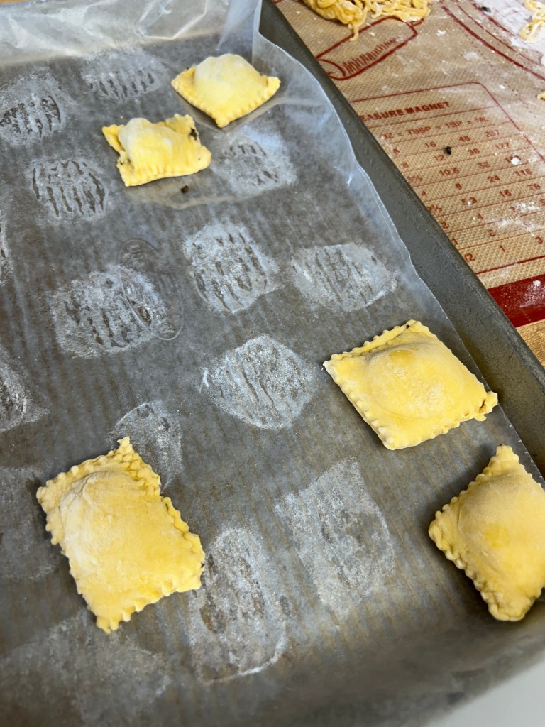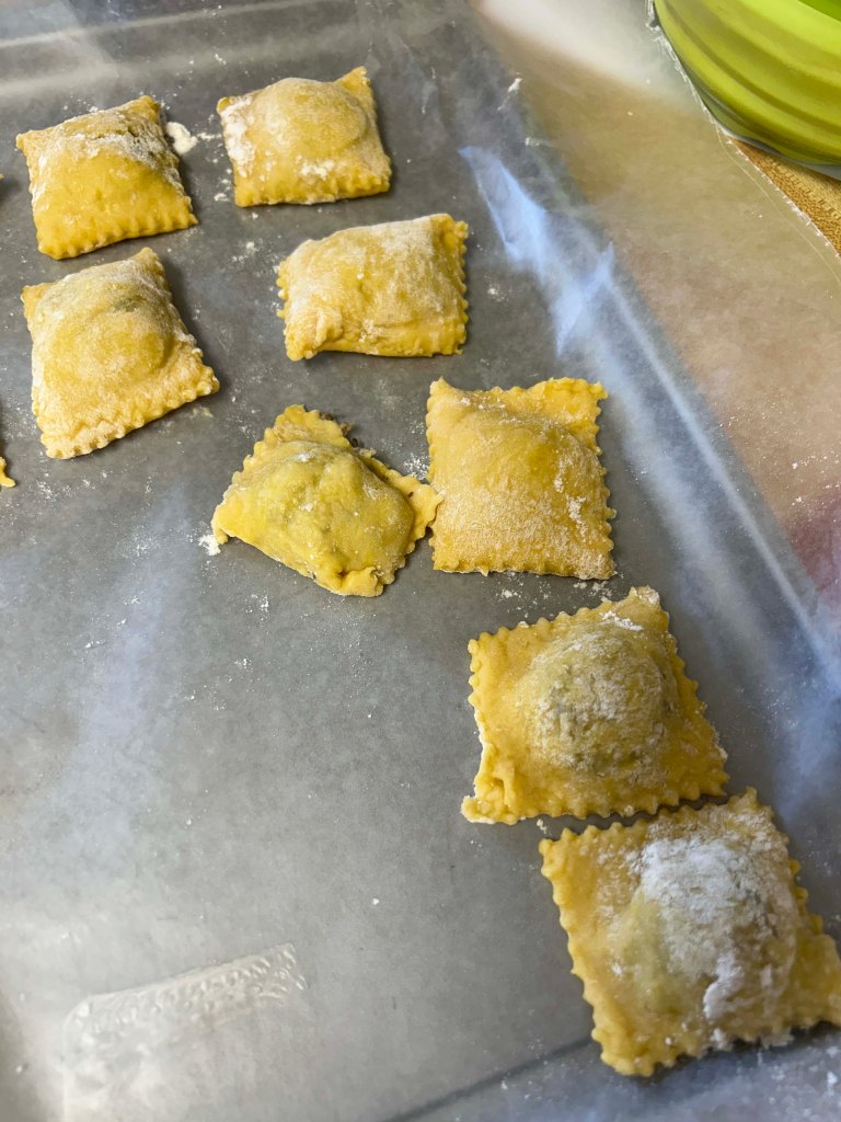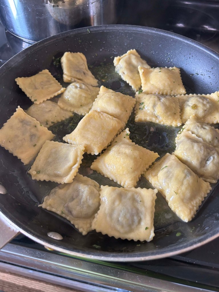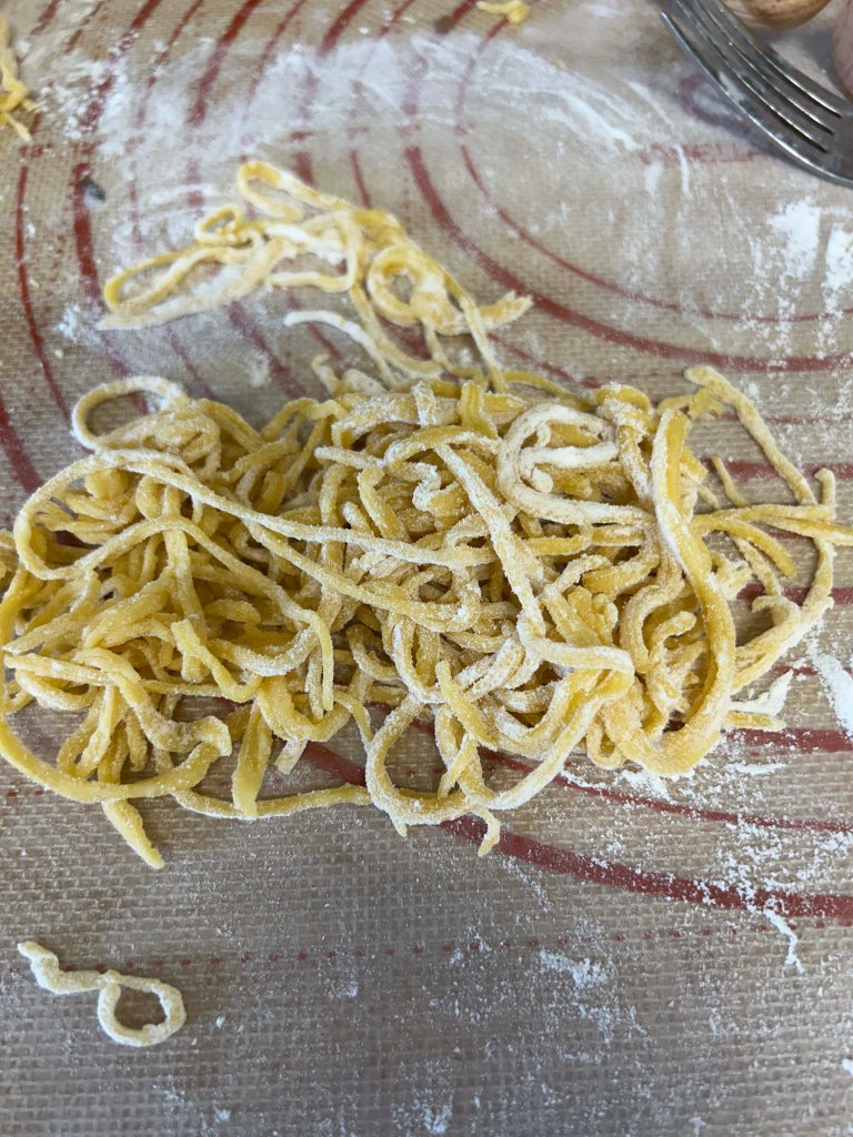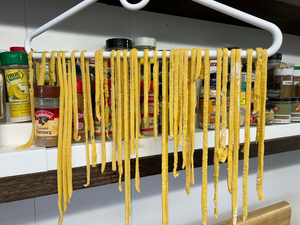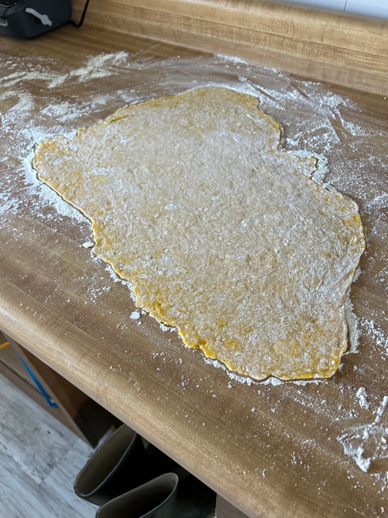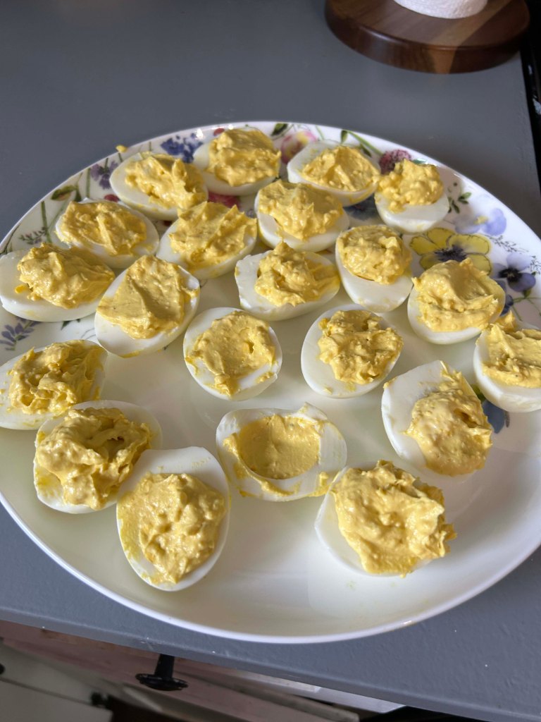 With all these eggs I have started doing a ton of cooking and so far, most experiments have turned out OK. I bought a Sailnovo Pasta Maker Machine which was a little intimidating at first but works pretty good and I made homemade mushroom ravioli and my great-grandmother’s egg noodles. I also tried making bread (the chickens were happy that day because it was terrible) but we luckily found a used bread machine at an estate sale for $10 and that bread turned out great! And after some trial and error I learned a method to hard boil chicken eggs and made some yummy, deviled eggs with my mom’s recipe.