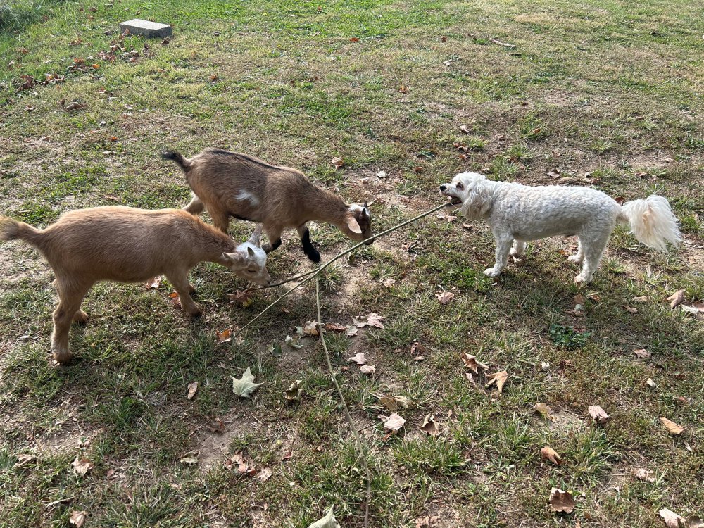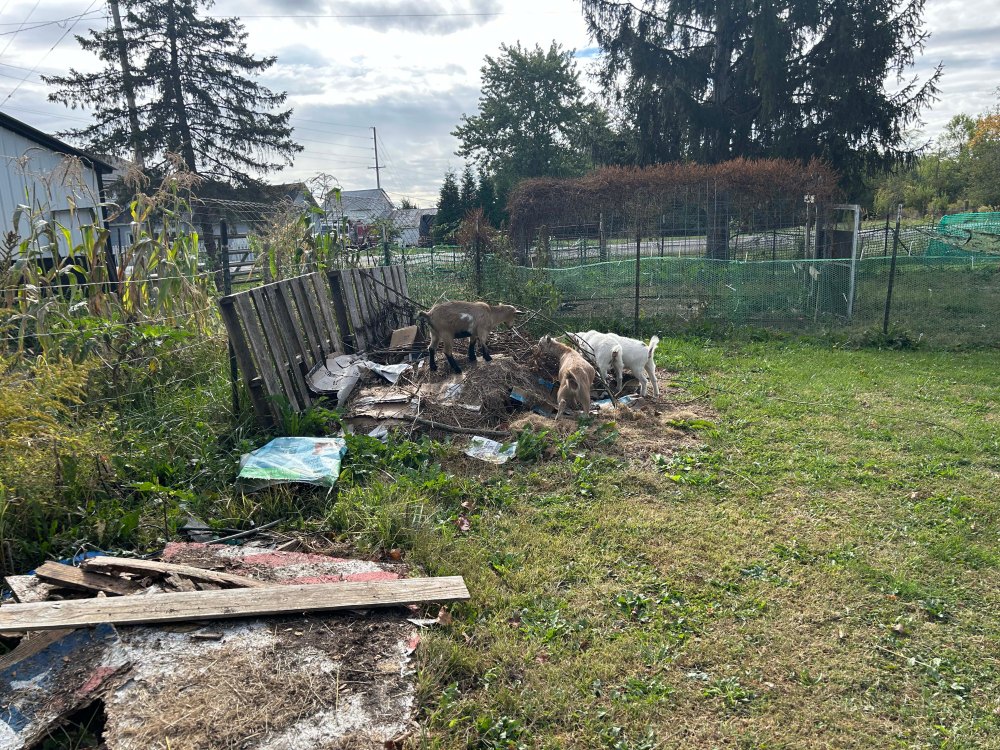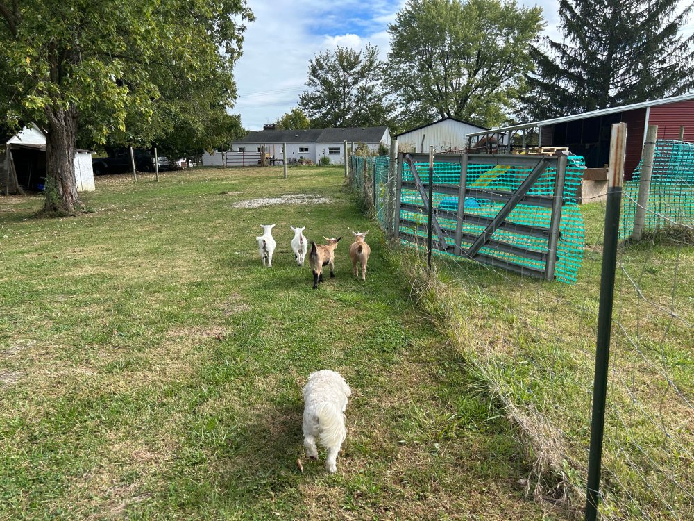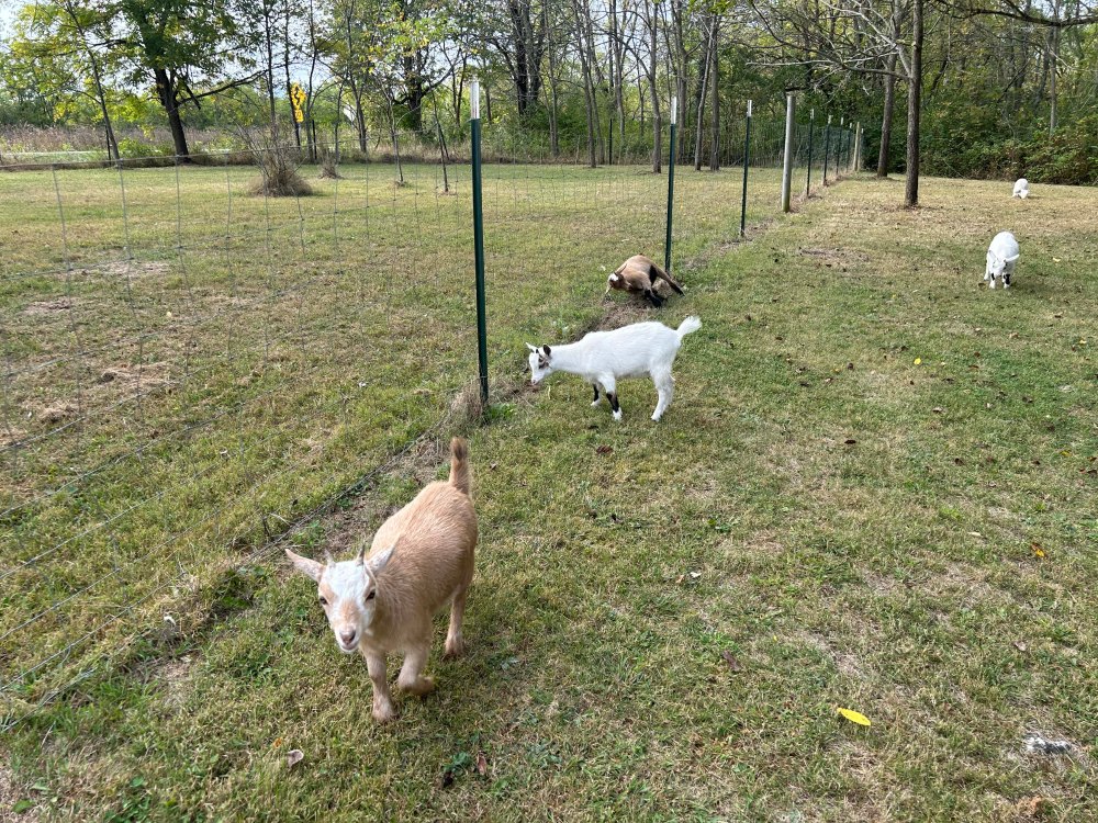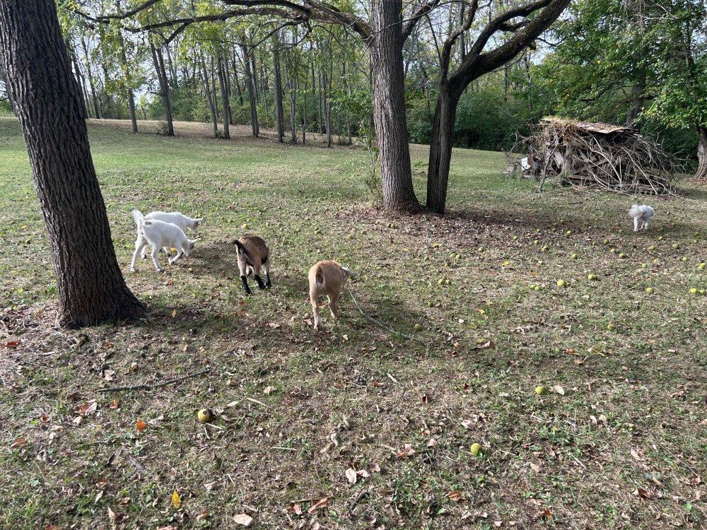 Fall has always been my favorite season and although New Hampshire falls were spectacular in their color and splendor they were also often very short. Ohio fall may lack a bit in the color explosion but the length of it can’t be beat. For the last few weeks, we have had summer like days with cool nights, and our windows have been open to a fresh breeze around the clock. The leaves have been slowly falling from the trees in stages is fun for us and the goats. Turns out goats love newly fallen leaves from trees, so I have started going on daily walks with them. We walk the whole outer yard together and they munch leaves along the way. Everyone wants to get in on the action and now even the cat follows along. I never imagined that this would be my life, but it is a really fantastic way to spend a lunch break.