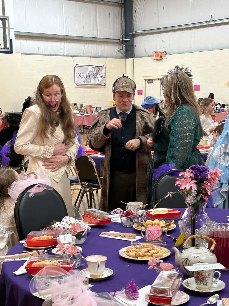 To be clear I didn’t jump in with both feet, but rather eased into the local pool partly because of my own nervousness and partly because it is a very small community and I was fully aware that if I screwed things up I couldn’t just roll down the road. I started with a local book club (based on my Mom’s recommendation) and this opened me up to a whole new group of people. Then I went to visit a local church and finally I worked a local Friends of the Library fundraiser. The theme was a teaparty which really isnt my thing but I was happy to help.