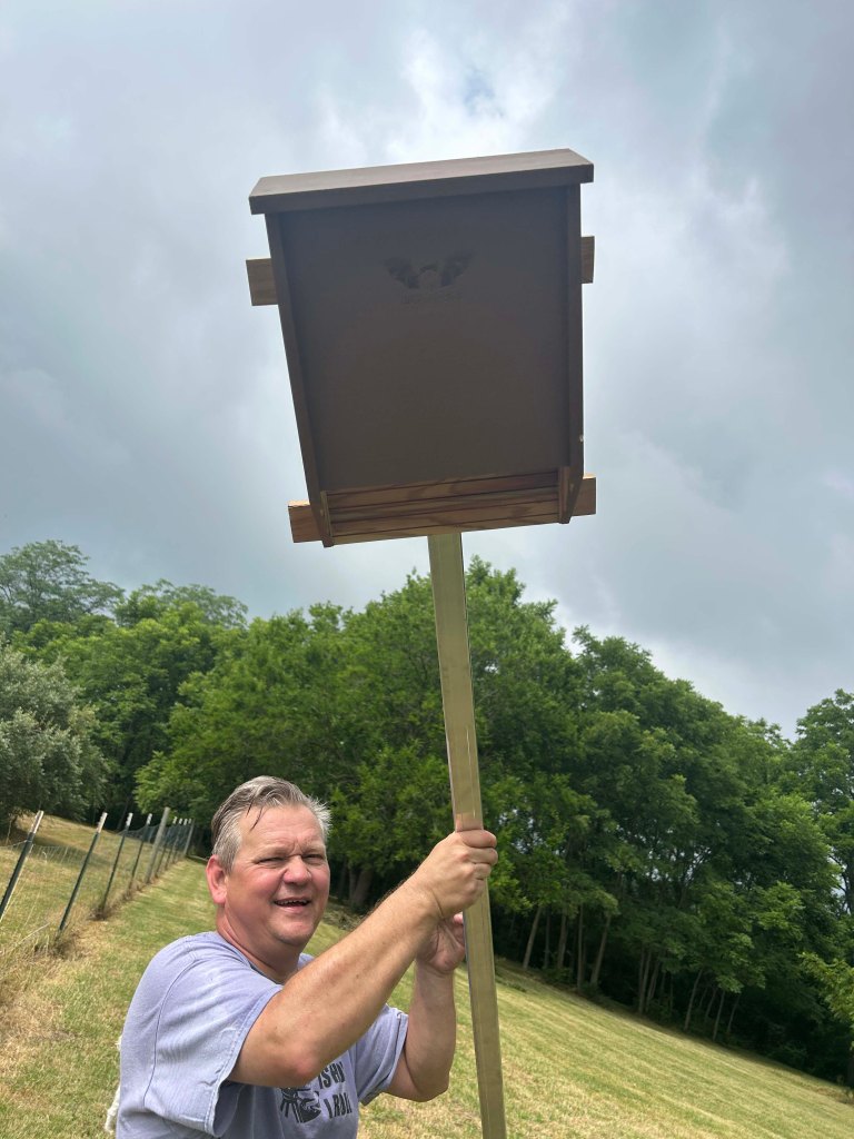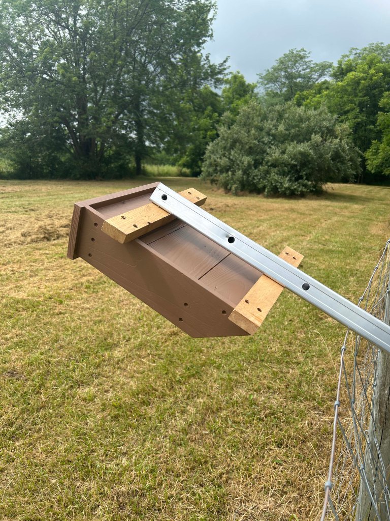 Another thing I really wanted was a bat house. We saw firsthand in Oregon how bats can help with mosquitos and since we had an open field and we are near a water source we’re in a good location. Buying the bat house was pretty easy but the pole was super hard. The ones online are crazy expensive ($120 and up), but they also don’t have them in many local stores. We discussed other options but at 12-20 feet high choices are limited. You can mount them on a building but it’s really not recommended and after a month of looking Lee actually found a telescoping pole for a martin house on clearance for $69!! We picked it up the day we got the cat and a few days later he mounted it next to one of our fence posts in a spot I picked out. This was no small job, and needed a little modifying so they would work together and I really appreciated it.