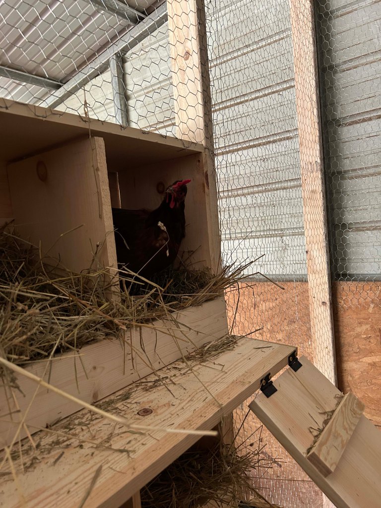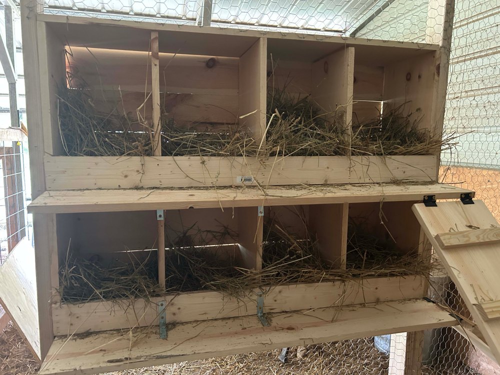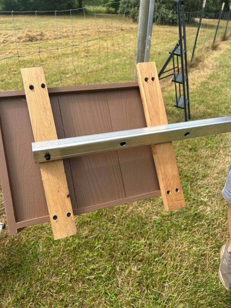 So everything looks great right? Well, here’s what we learned later. Chickens will naturally sleep in the highest point of their pen and my roosting bar wasn’t even close. Actually, since Lee built the boxes so high they sleep in the boxes at night which is not great because then the boxes are full of poop every morning. In all the research I did on making roost I totally didn’t get that it had to be at the highest point. That meant that Lee had to go in after the fact and try to build a roost which would have worked much better if we had taken it into account from the beginning. He offered to rip out the top row of boxes but I said no way after he did all that work.