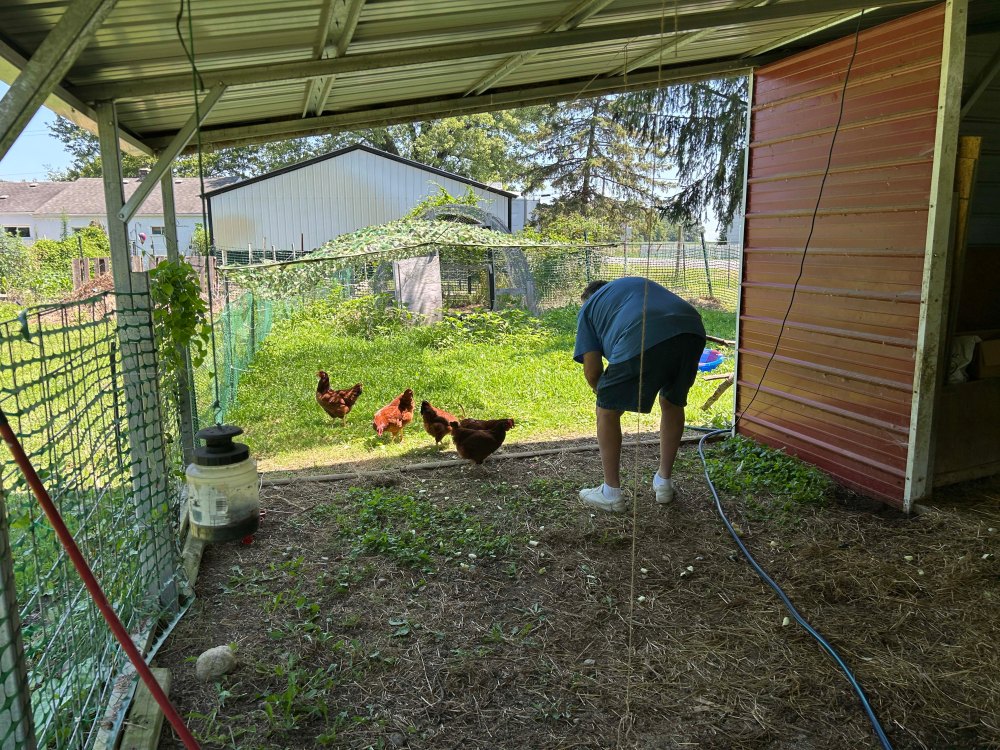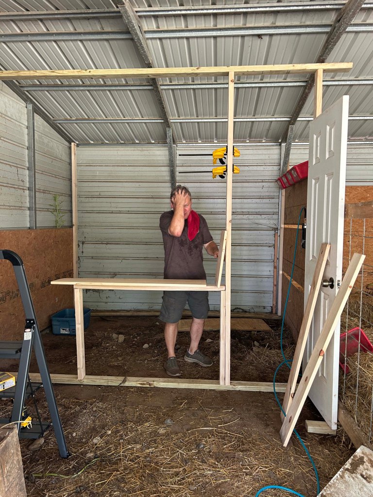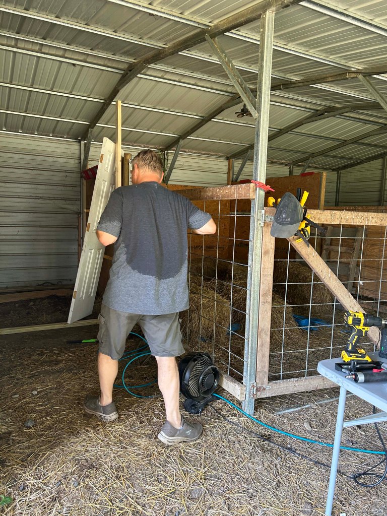 A lot of people online talk about the $3K egg, and there is a lot of truth to that. To get that first egg many people spend thousands on all the things they need. We spent more like $800 on everything we needed and I was really lucky because Lee built the coop, and we had existing fencing on the property that was already mostly what we needed, and the previous owners left behind a hefty supply of additional rolls of fencing and posts. The price of premade chicken coops is ridiculous and most of them are super small accommodating only a couple of birds. Thankfully I had an entire barn stall sitting empty and after researching extensively I saw a version where someone converted the stall into a coop. After some thought Lee agreed this was the best way to go and got to work. The pictures below were several days of HARD, sweaty work in above 90 temps and humidity over 85%. I think its beautiful, but of course Lee can only see the flaws, but no doubt it’s way better than any chicken coop I saw under $4K.