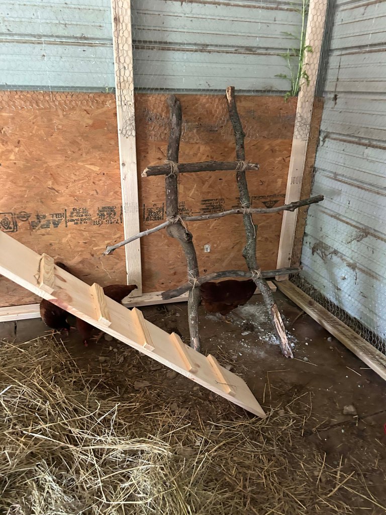 While Lee was working on the coop I decided to take a shot at creating a dustbath and a homemade roost. In both cases my work was much less competent than his but I was super proud of myself when I finished my contributions.