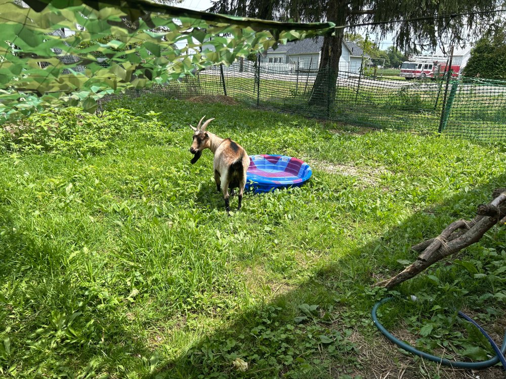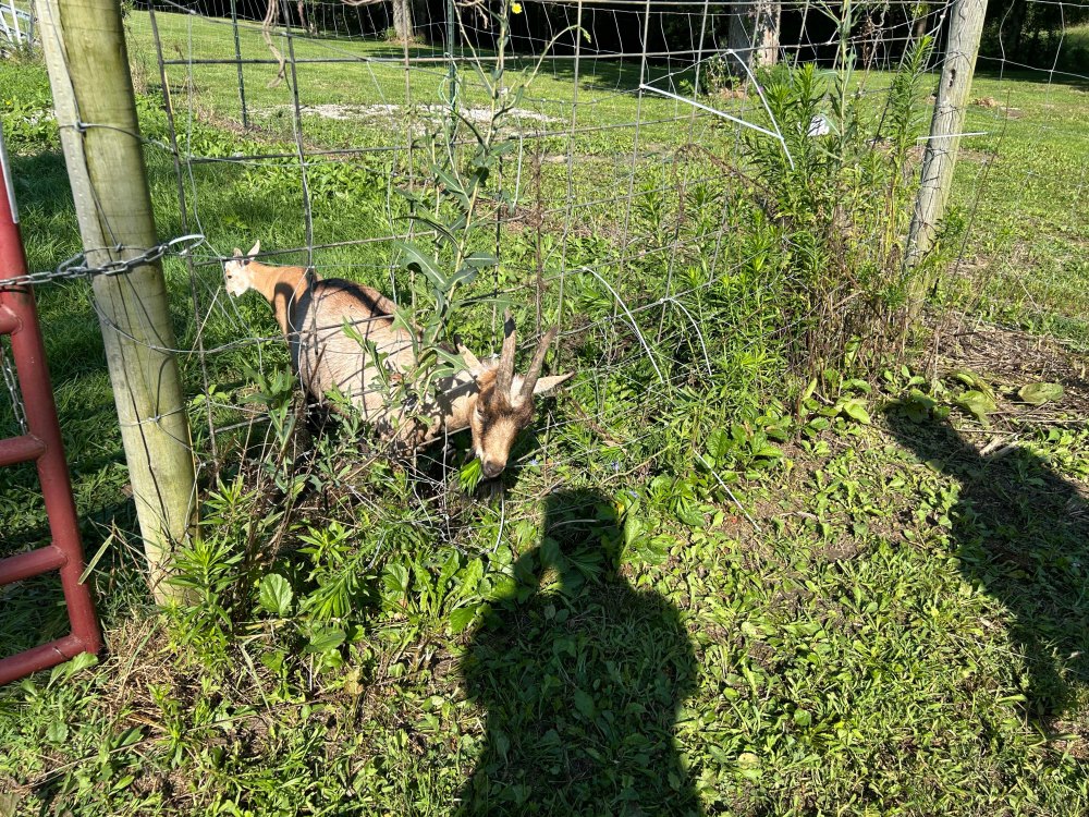 At 9pm we got a call from our neighbor and they said they saw on the small community Facebook group someone had found the goats. That’s how I learned we had a Facebook group. Lisa (who also works from home) only had a name so she got on the State auditor website and found and address it was .1 miles down the road and there we met another neighbor Ruth who had a huge farm with our goats in her barn. Ruth was also very nice and told us her neighbor found them on the road and had assumed that they were hers and put them in her barn. I could see why because she had goats, sheep, pigs, rabbits, a mini horse, and dogs all over her property. It was controlled chaos in the best way and she obviously knew what she was doing. As another side note while we were there we saw goats jumping over 4 foot fences with relative ease and when we asked why they didn’t wander off she stated because they knew that’s where the food was. Since we are feeding the Momma goat the best quality hay and corn we can find and have beautiful pasture I didn’t know what to say to that. Honestly I think she is just trying to get to a bigger herd, which I don’t have.