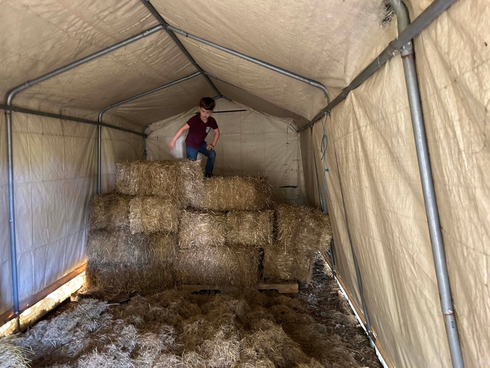 Another big job we both worked on was getting the center stall ready for winter. It was full of broken pallets and was actually kind of dangerous, so we pulled everything out and stacked hay on one side and straw on the other and Lee hung up all my tools. This way when winter comes things will be close by. We still have the large tent for additional hay and straw but it has holes so we put a large tarp over it.