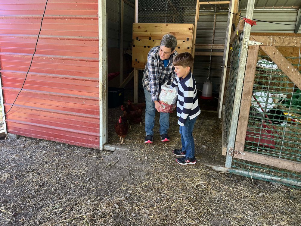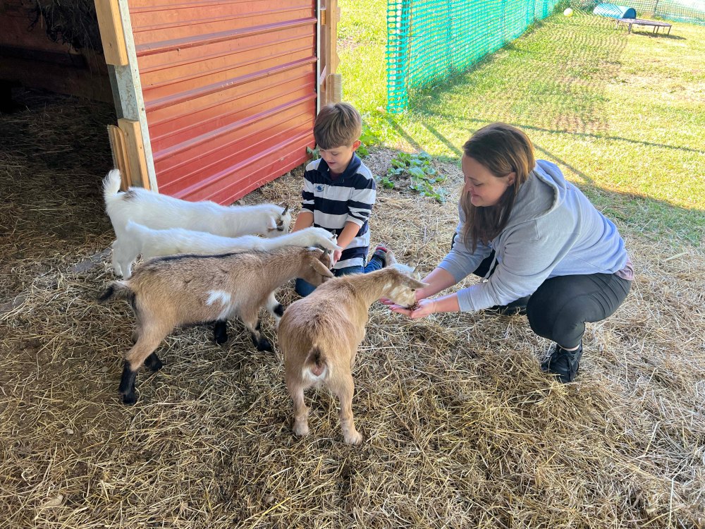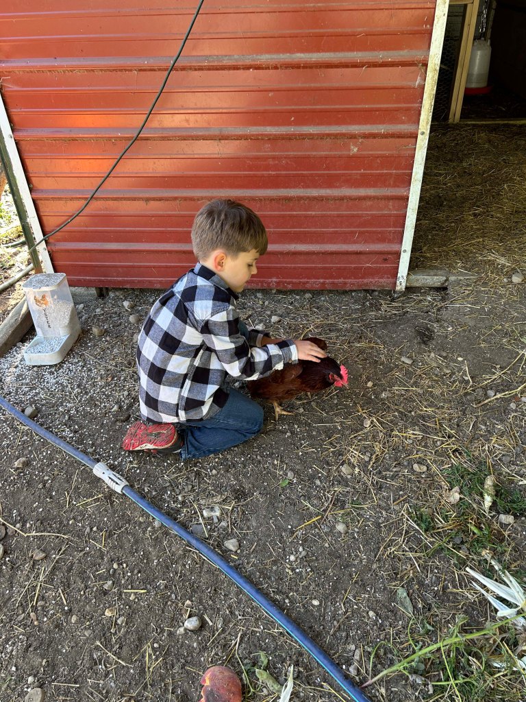 I couldn’t wait to get back home with them and the tour went so great. I loved sharing all the little things we had done with my friend and daughter and Oliver really loved the land and the animals. The cat in particular took right to him and the two of them hung out non stop over the next few days. He did a really good job with all of the animals, even finally getting one of the chickens to let him pet her.