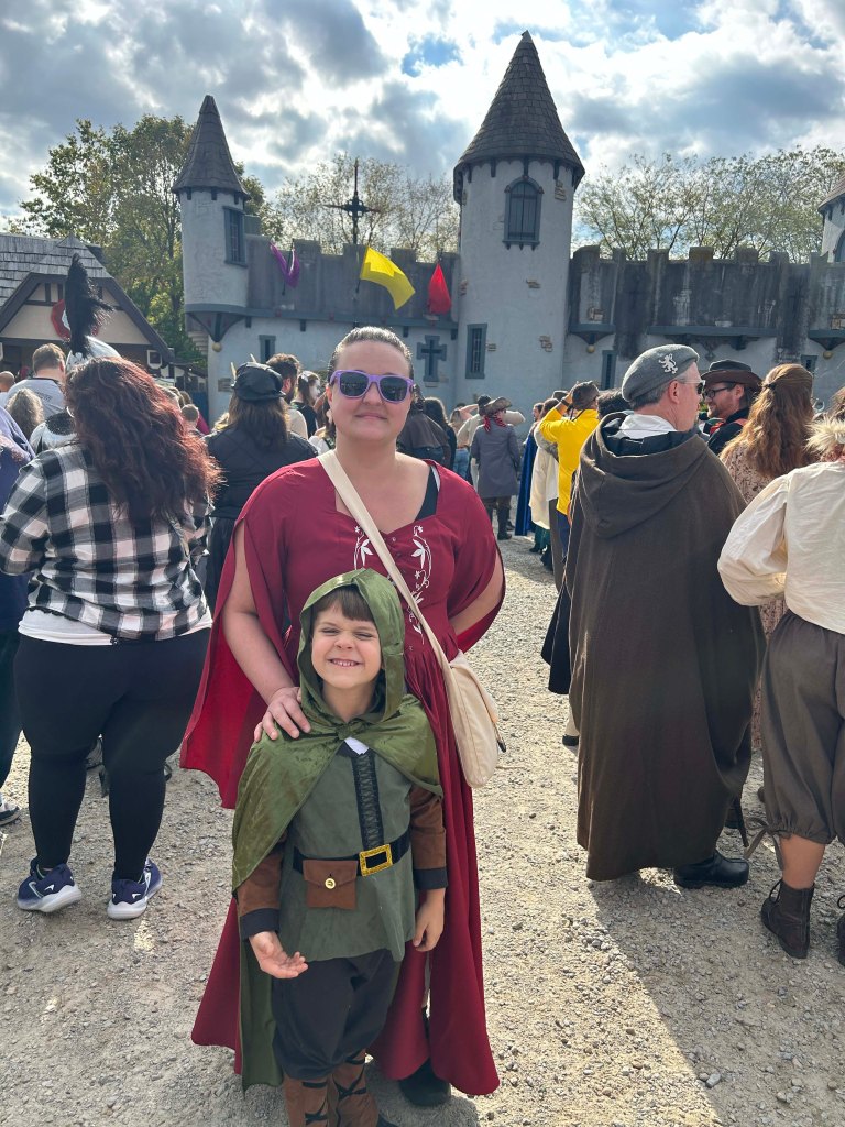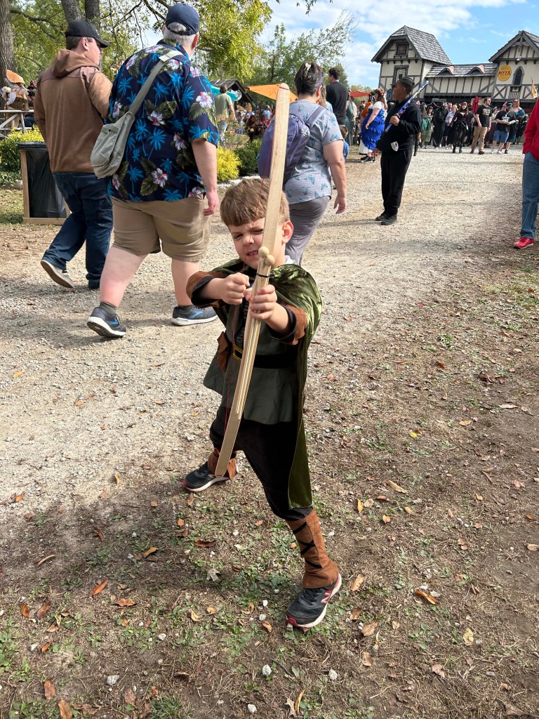 The big activity though was the Ohio Renaissance Festival. This freestanding village has been a renaissance festival for over 30 years, and Lee and I were there the very first year. I have been more times than I can count and my kids have fond memories of going there. So it was at the top of Kyrston and Lee’s list of places to go. I’ll be honest it’s not my favorite place, and I really don’t like dressing up for any occasion, but when Kyrston asked me to dress up with her and Oliver the love of my grandson won me over. Turned out the costume was actually OK and I loved how Oliver and I matched.