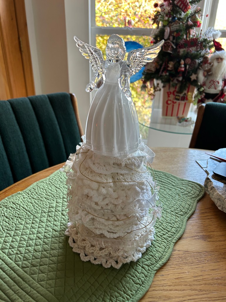 My mother-in-law gave me some of Lee’s grandmas doiliesLook what I made!I bought a $10 bread machineAnd started baking breadMy big craft has been taking old cookie cuttersAnd with a variety of materials turning them into Christmas ornamentsI even signed up for a local craft event sponsored by the library and I met some people!!!
