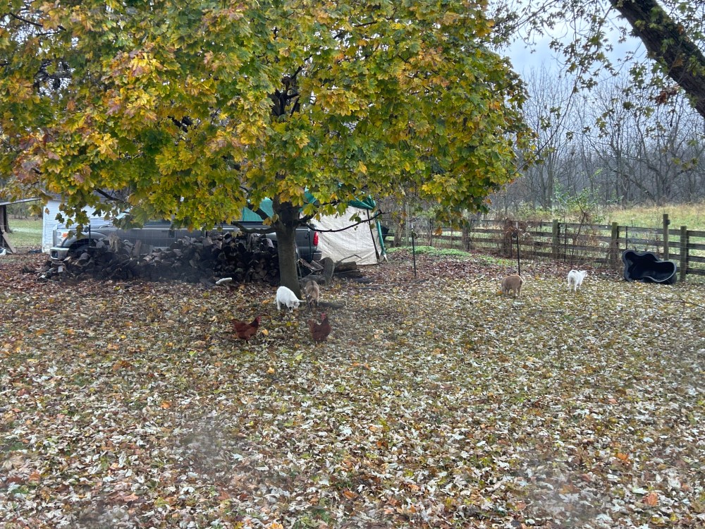 Thankfully the snow didn’t last long and once it melted the goats and chickens got much bolder. They started to come into the backyard to eat the remaining leaves as they fell. Once Lee mentioned that the chickens would eat the bug larvae I was all for the exploration. If we end up losing one to a hawk at least they had a good life. Speaking of chickens I am still getting 4-5 eggs a day, but thankfully I found a young family I can donate my excess eggs to.