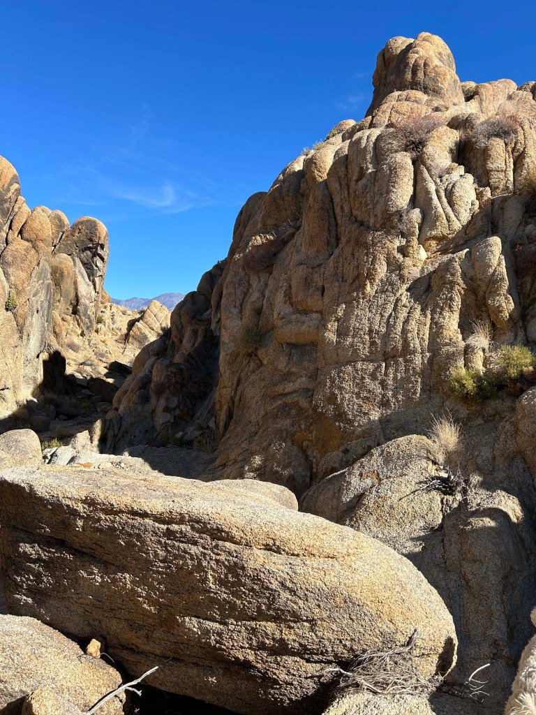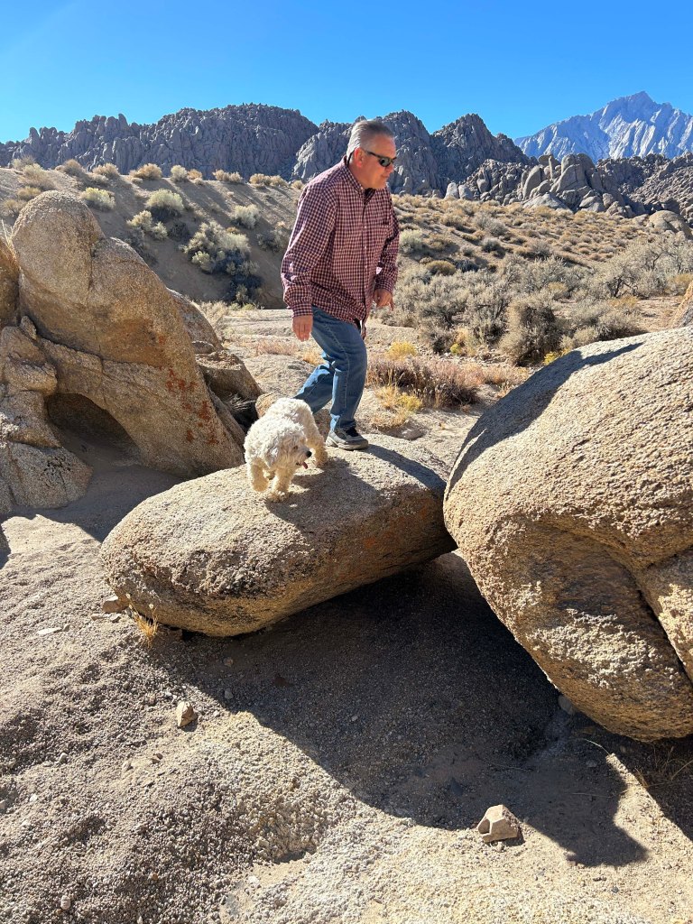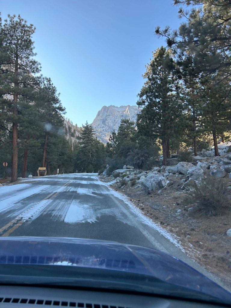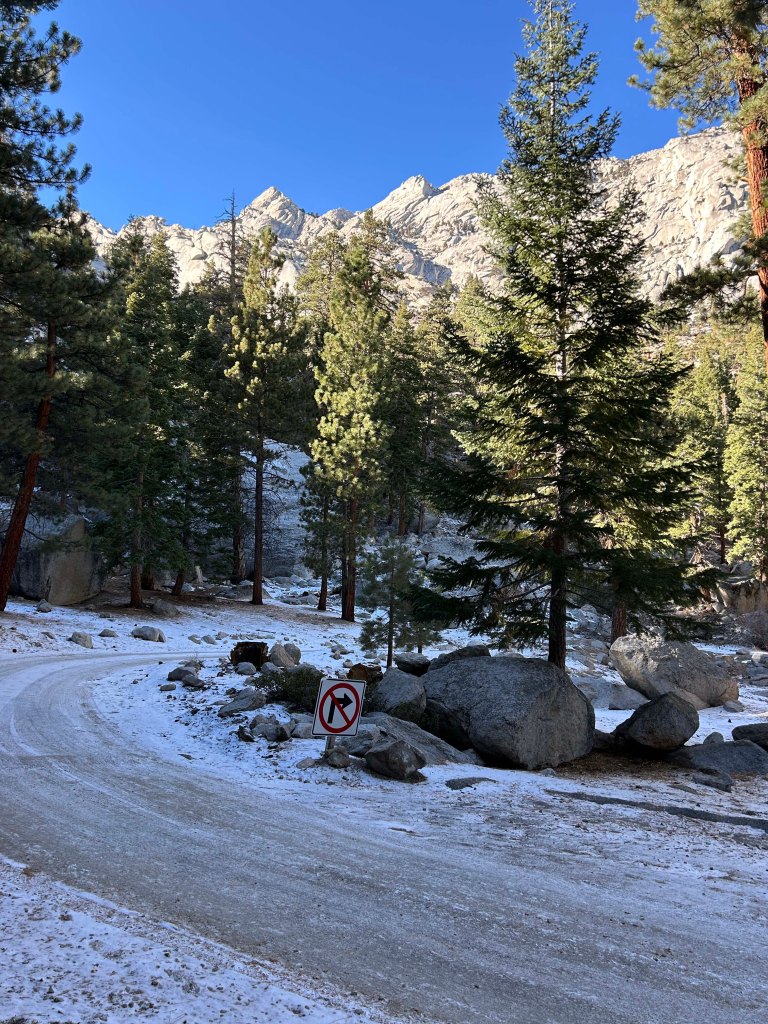 We had so much fun we didn’t want to stop so we took Jack home for a nap and then Lee and I drove up to Mt. Whitney portal. I had no idea how close this was and as we climbed to over 9,000 feet the terrain totally changed. We had our first snow in awhile (car anti lock brakes and traction control did great) and when we got to the end of the road we saw some gorgeous campgrounds near a trail to the top of Mt. Whitney. Beautiful.