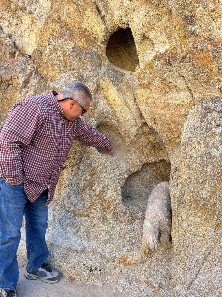 When we got into the area proper we were really blown away. From US 395 all you can see is huge piles of dirt, but when you get behind that pile the rock formations are incredible. It reminded me of a much larger version of City of Rocks in Deming, NM and we could have spent days exploring here. Jack loved it too as we wandered about and explored the area.